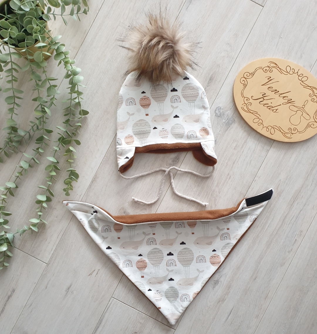 BALON Z WIELORYBEM zestaw zimowy z pomponem