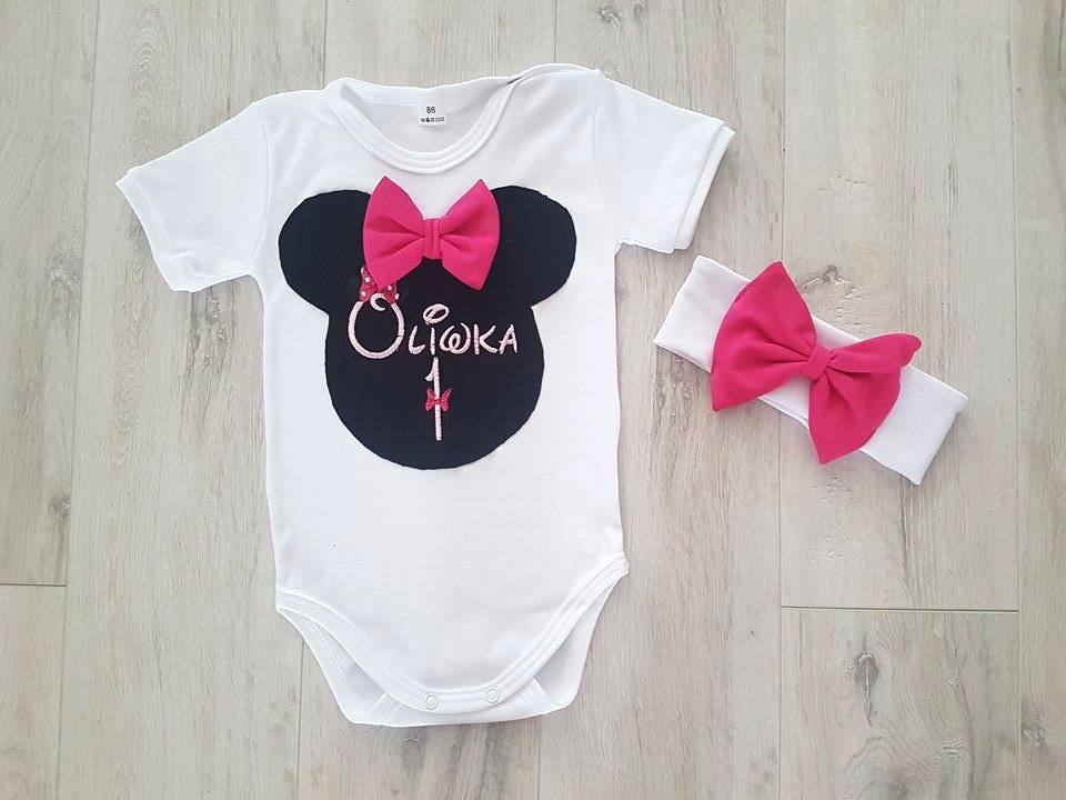 Body na krótki rękawek z aplikacją oraz dowolnym napisem, może być napis na urodzinki lub bez okazji neutralny