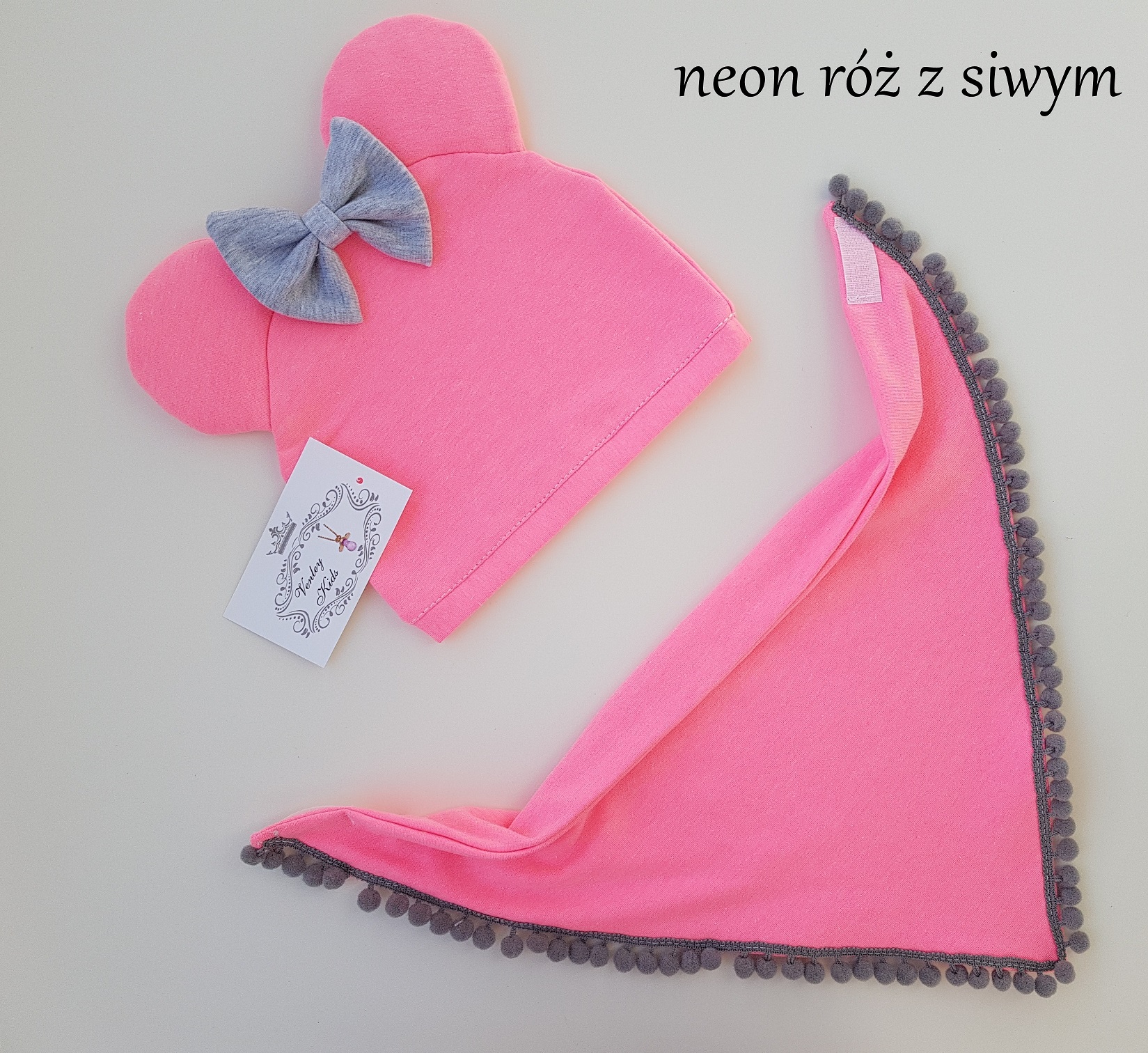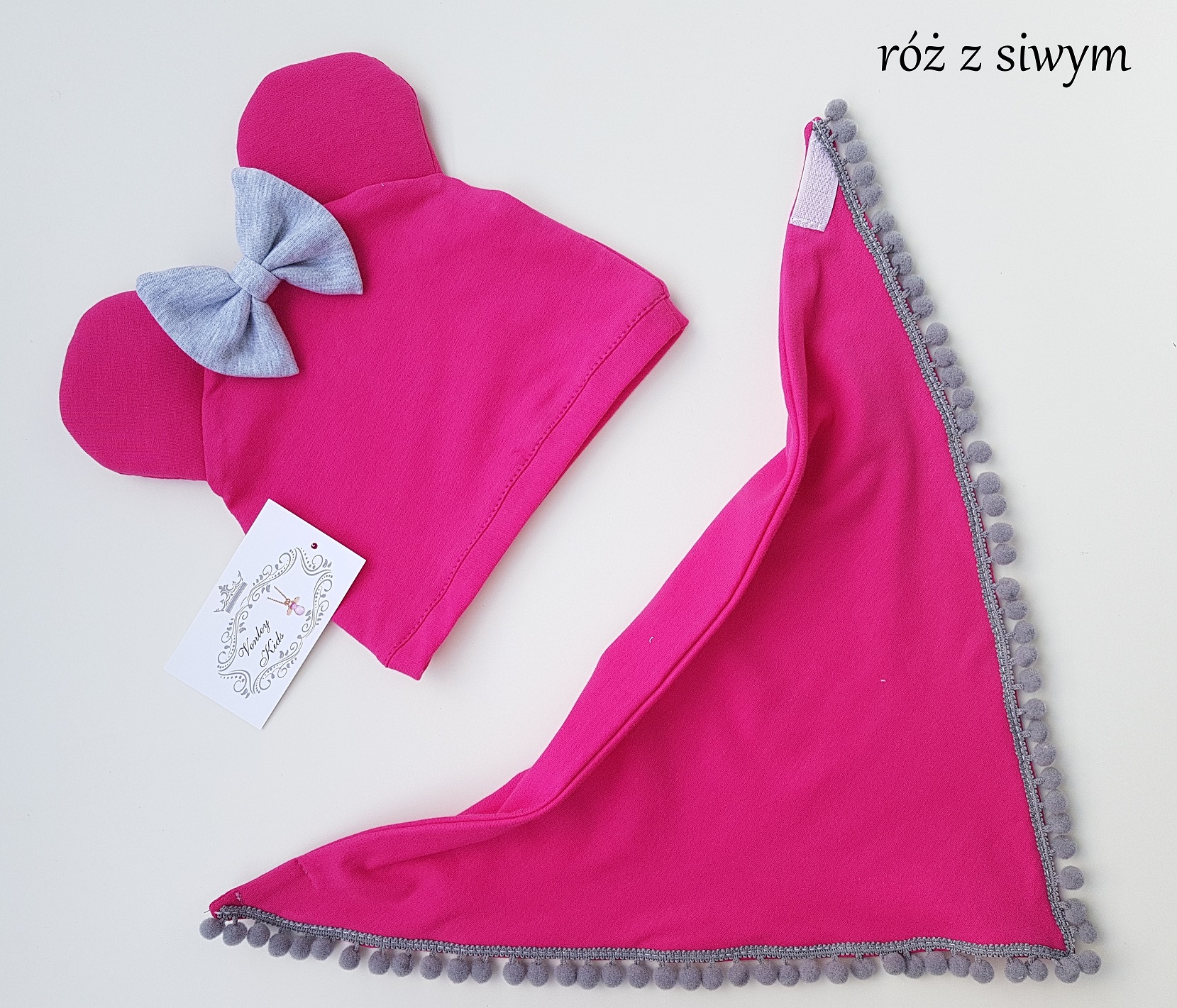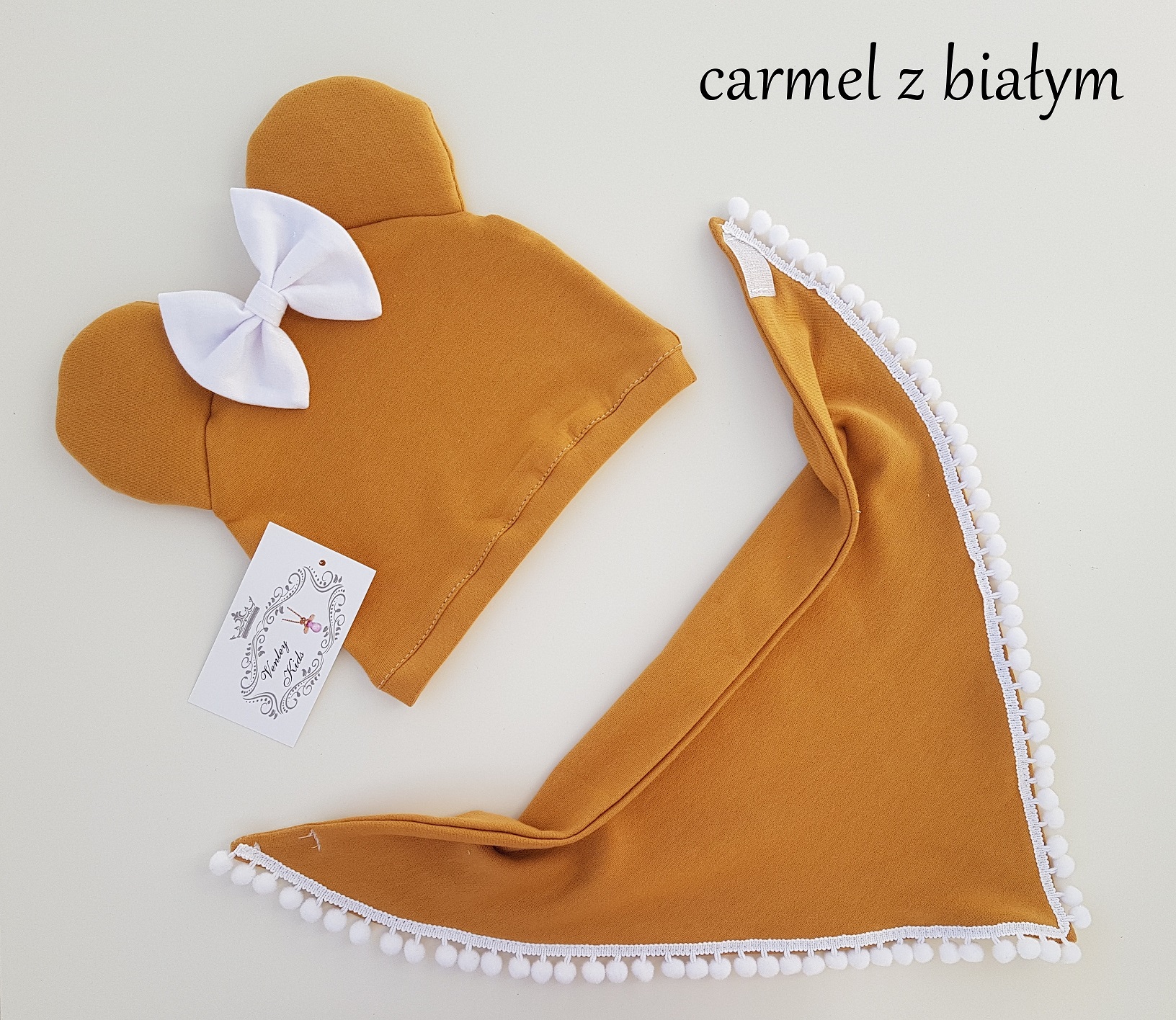 Czapka ( kokarda ) z uszami + chusta z pomponami