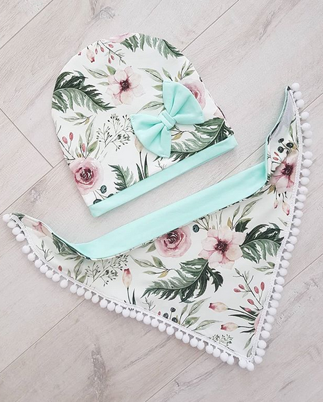 Czapeczka szyta z jednej warstwy materiału , ozdobiona kokardką .