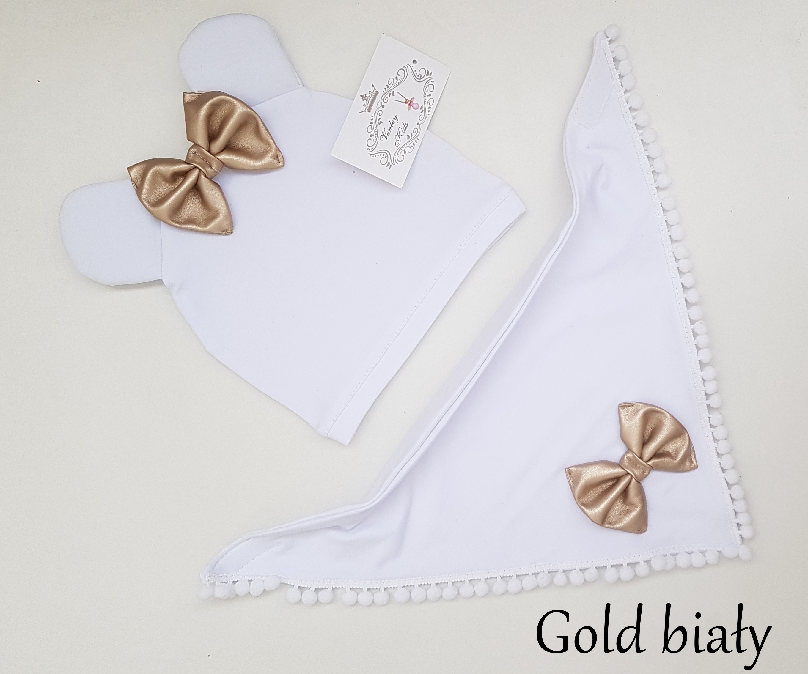 - Chusta z pomponikami oraz kokardą zapinana na rzep