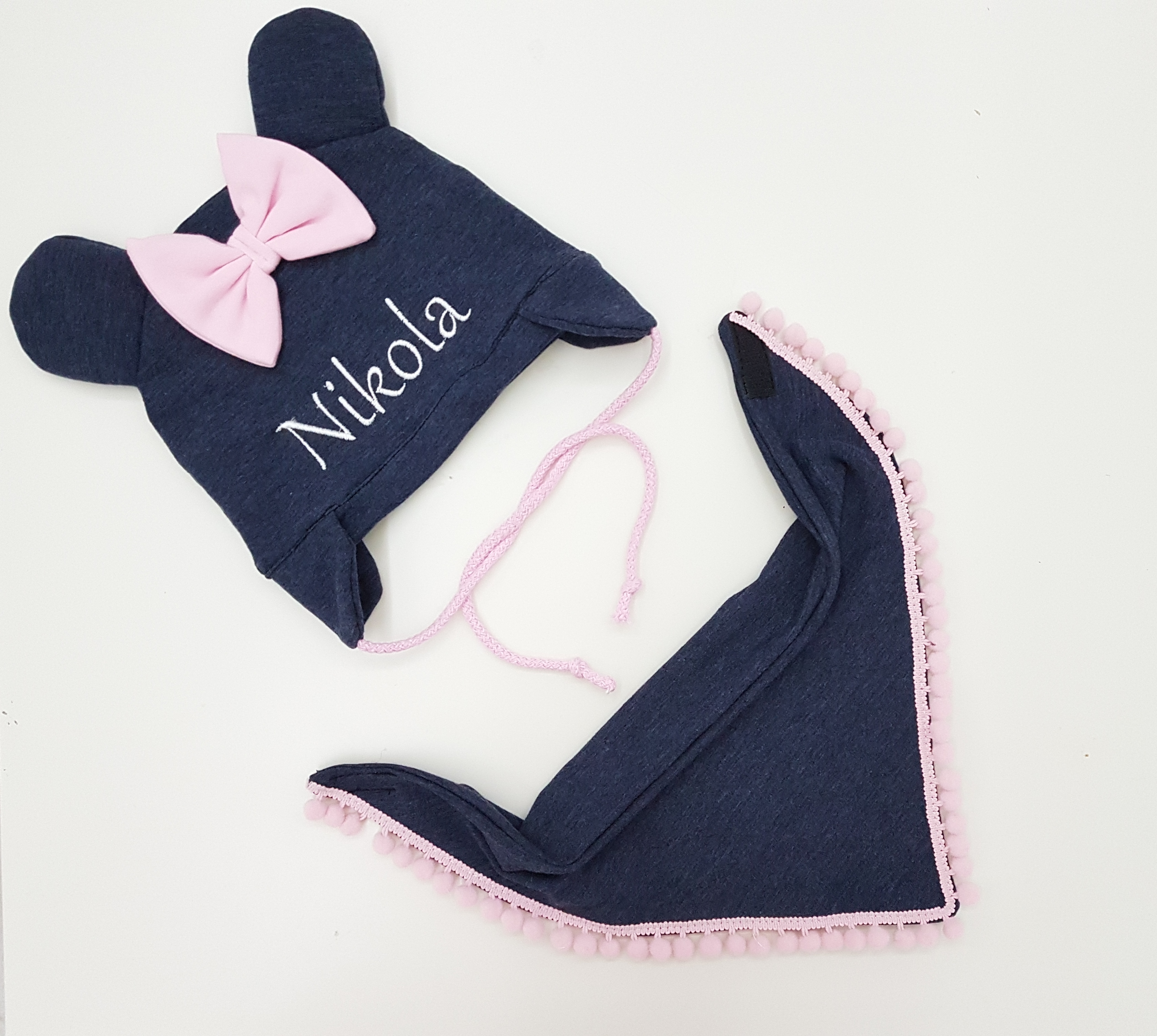 Czapeczka z uszami ( podwójna warstwa materiału ) , dodatkowo zdobiona kokardką