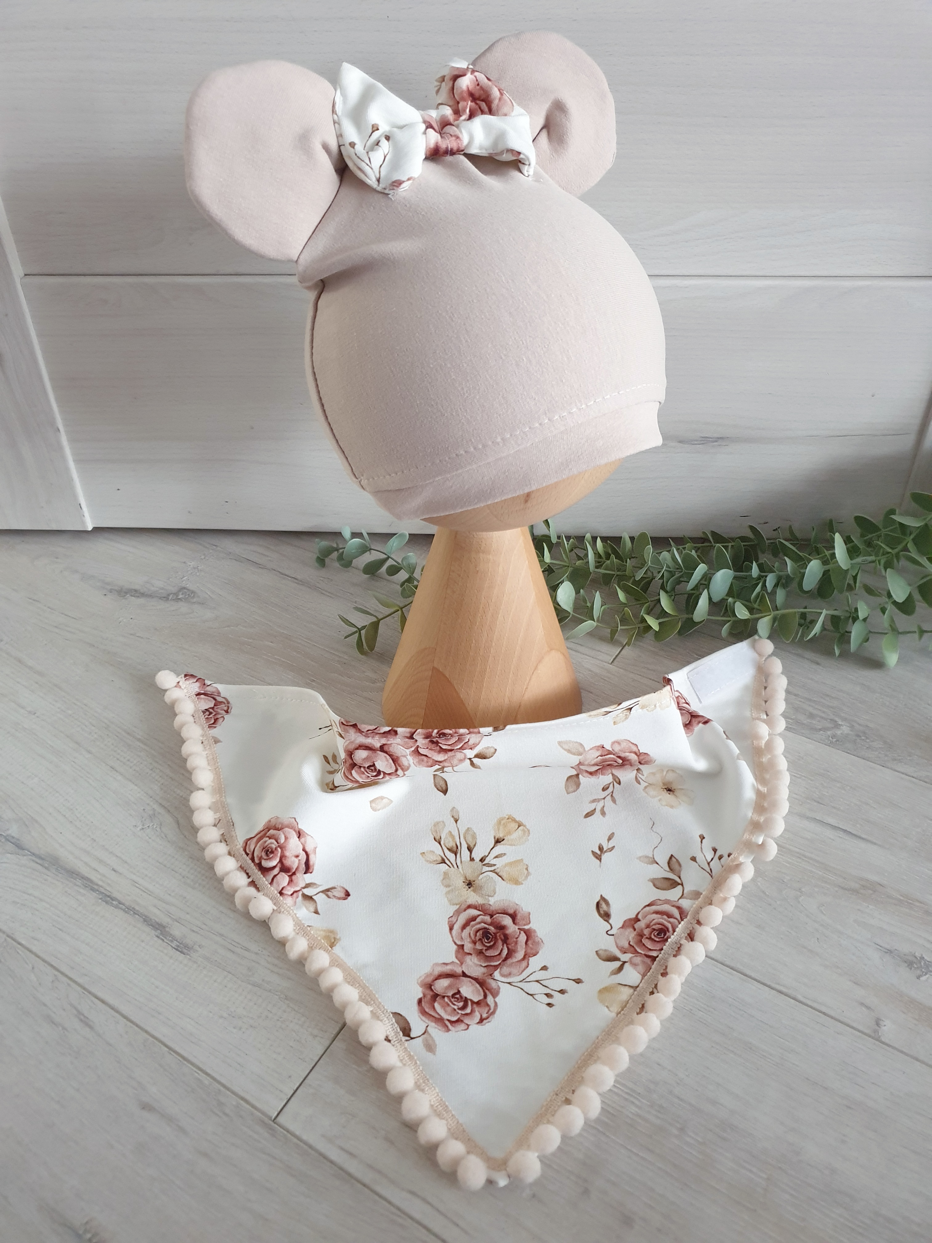 Czapka z uszkami + chusta HERBACIANE RÓŻE