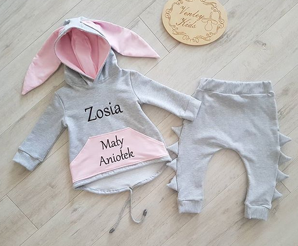 - Przedłużona bluza z kapturem i uszami , na bluzie wyhaftowane są napisy w dwóch częściach, proszę uzupełnić POLA TEKST
