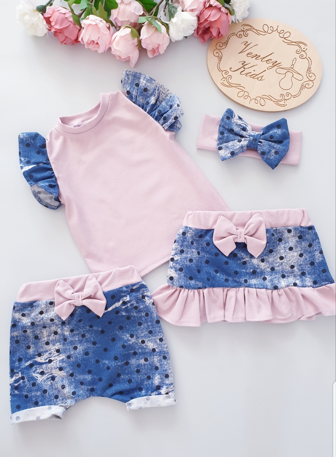 * Bluzeczka + spodenki + spódniczka + opaska 4 el