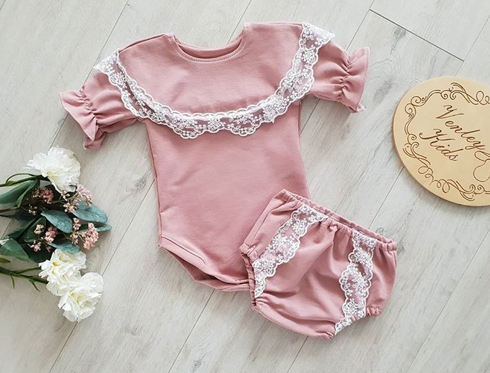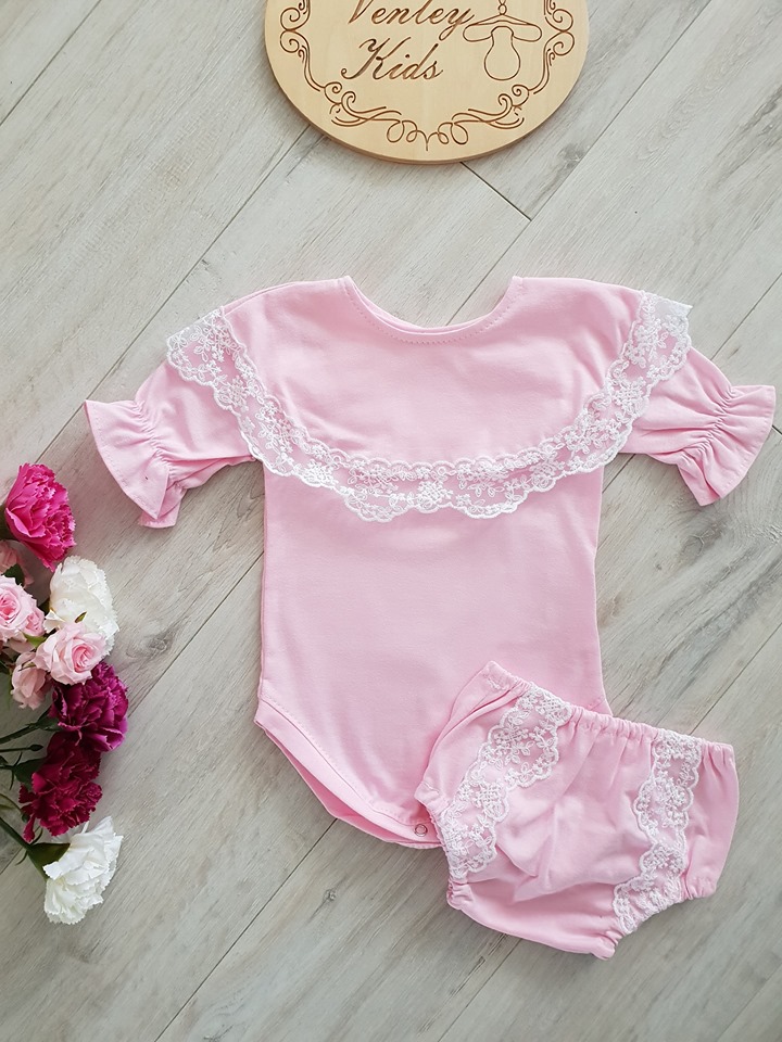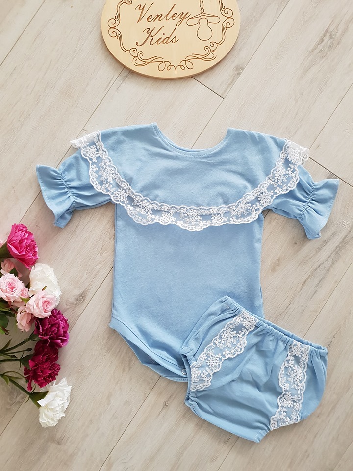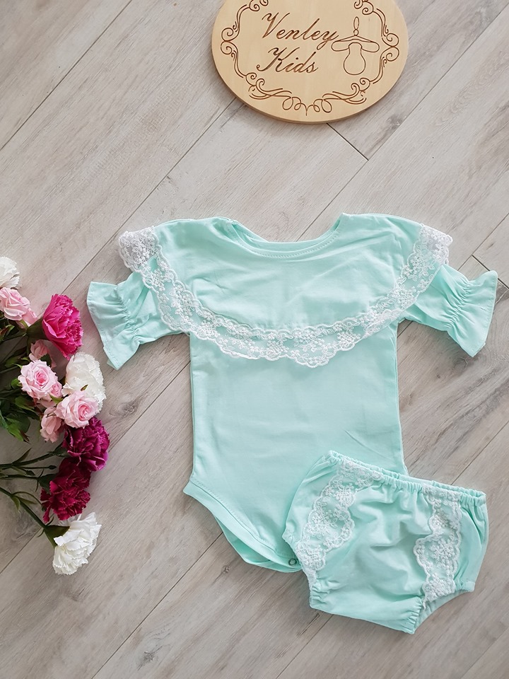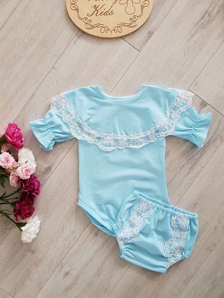 - Body lub bluzeczka z falbanką wykończoną koronką, rękawki układają się w dzwoneczek .