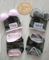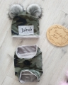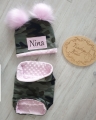 Czapeczka ocieplana z dwoma pomponami , na czapeczce haftowane dowolne imię