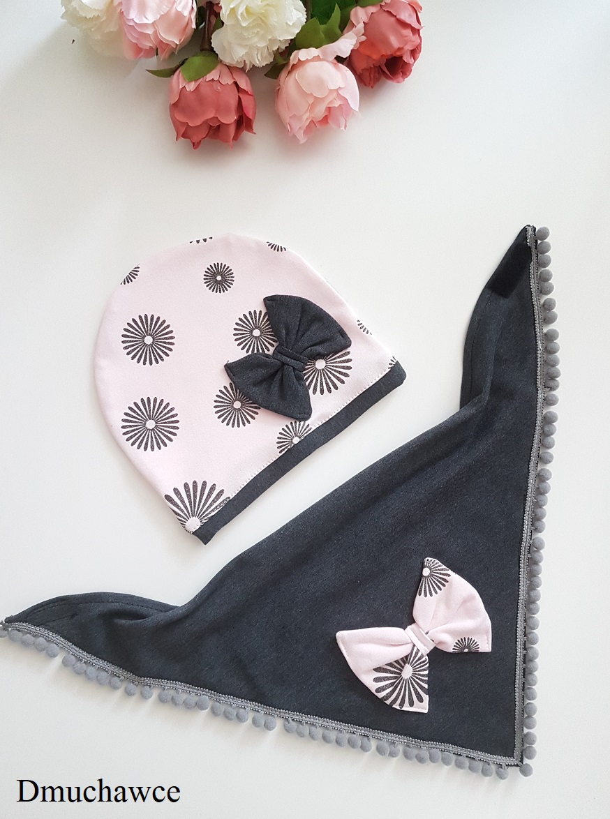 Czapka szyta z pojedynczej warstwy materiału ozdabiana kokardką