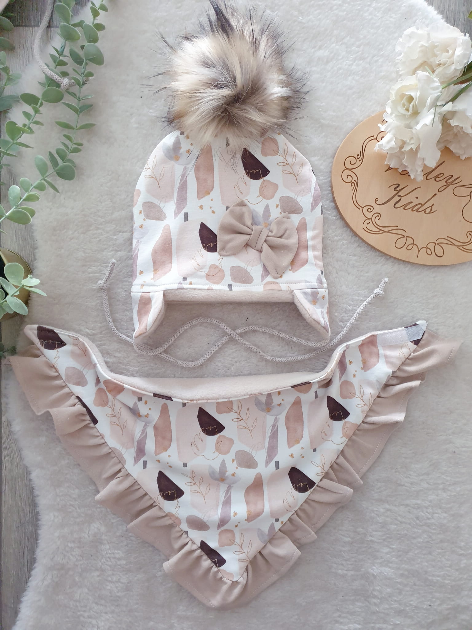 ABSTRAKCJA BEŻ zestaw zimowy z pomponem
