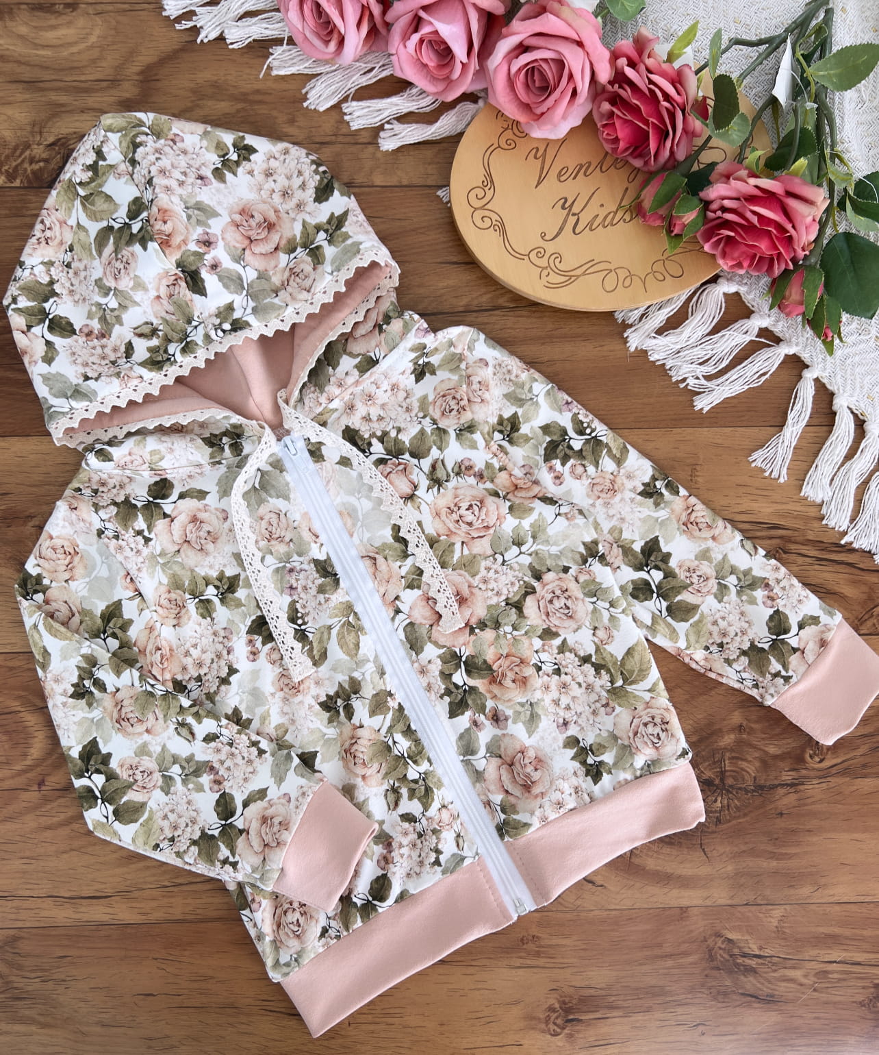 Bluza z kapturem obszytym koronką