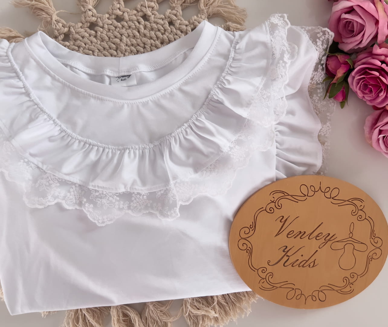 Bluzeczka biała z falbankami i koronką