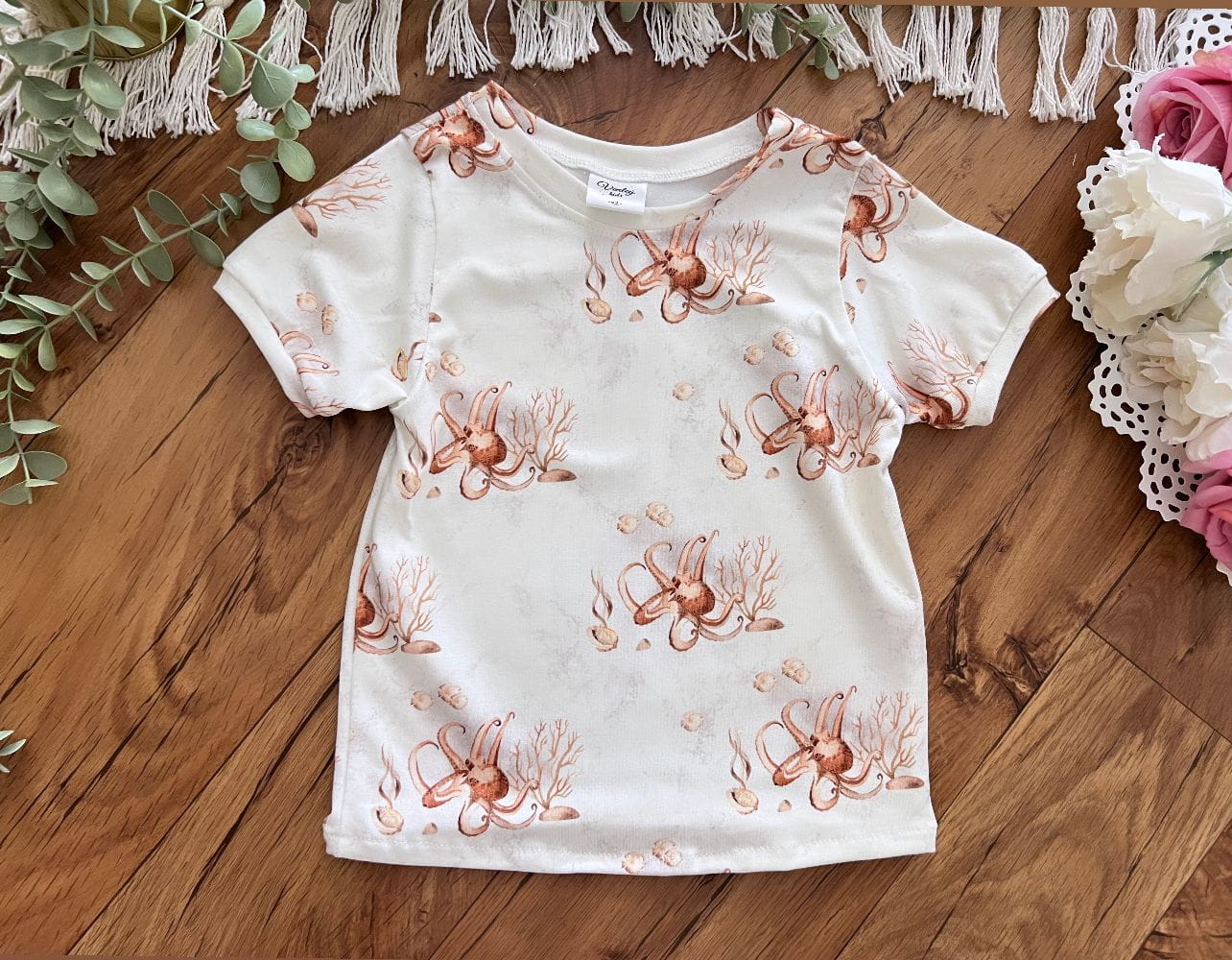 Bluzeczka letnia krótki rękawek ośmiornice beż