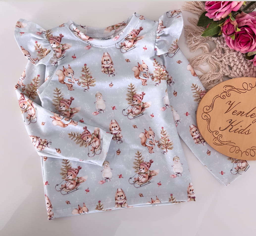Bluzeczka z falbanką WIEWIÓRKI błękit