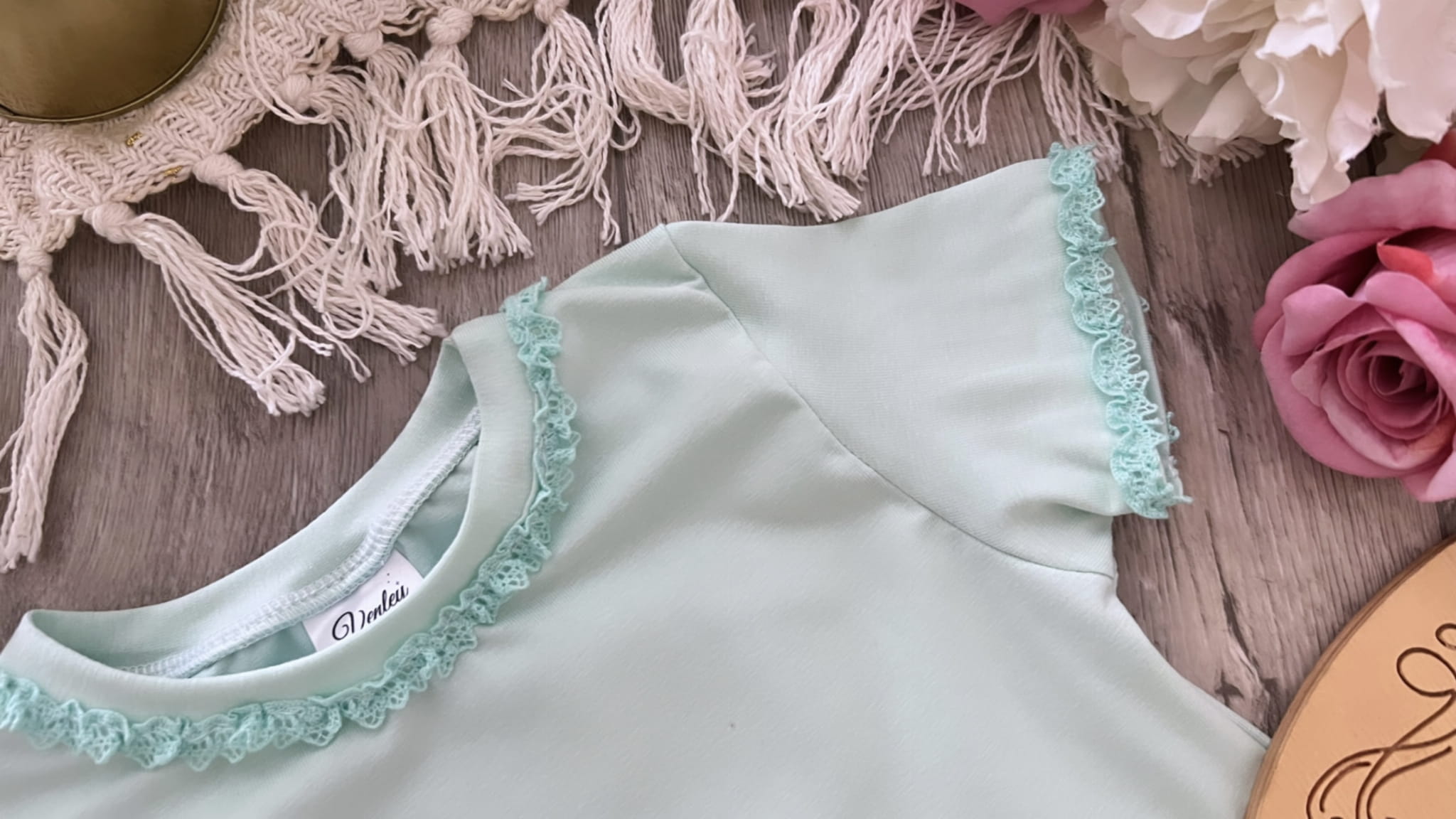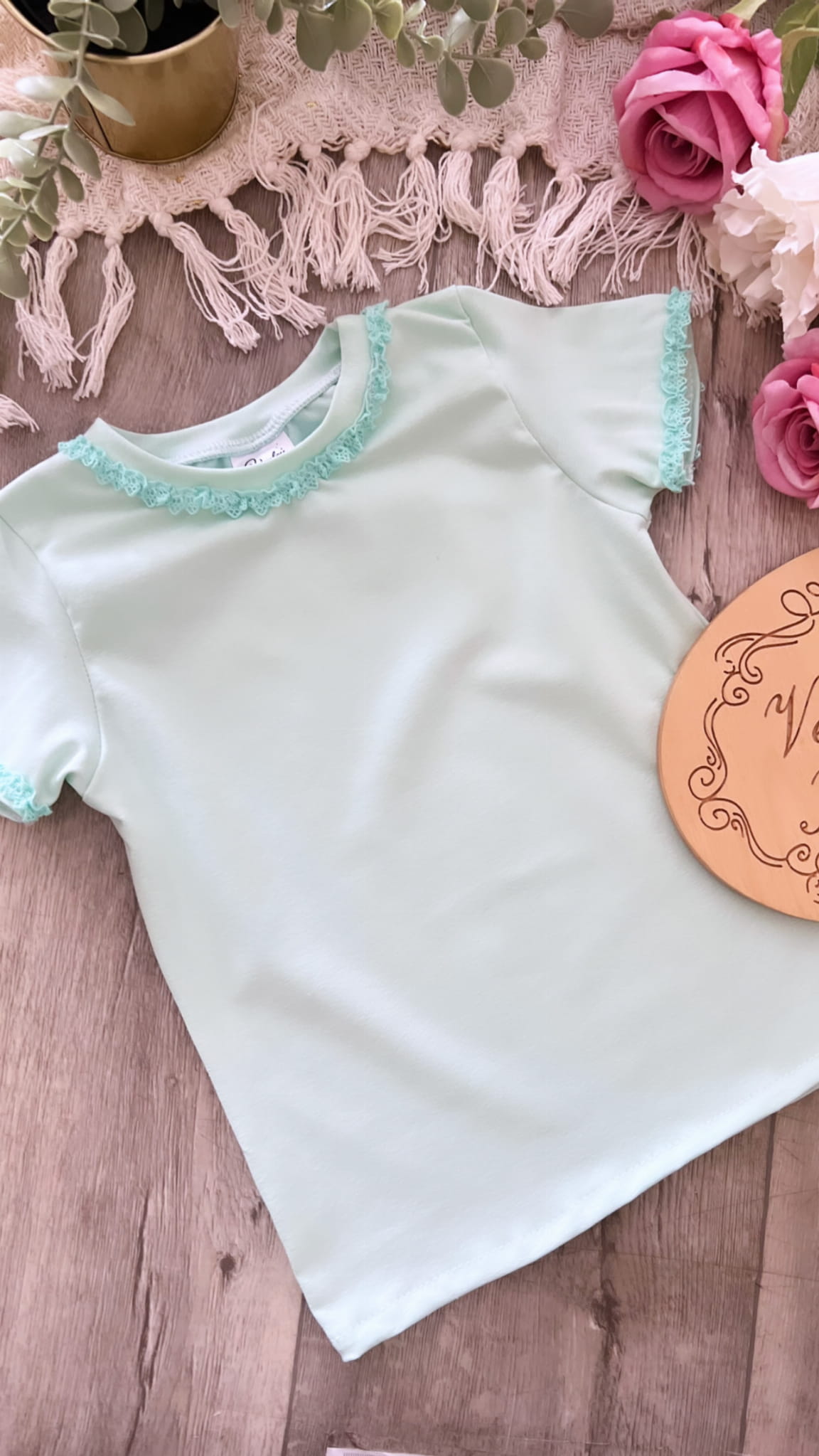 Bluzka t-shirt mięta z koronką
