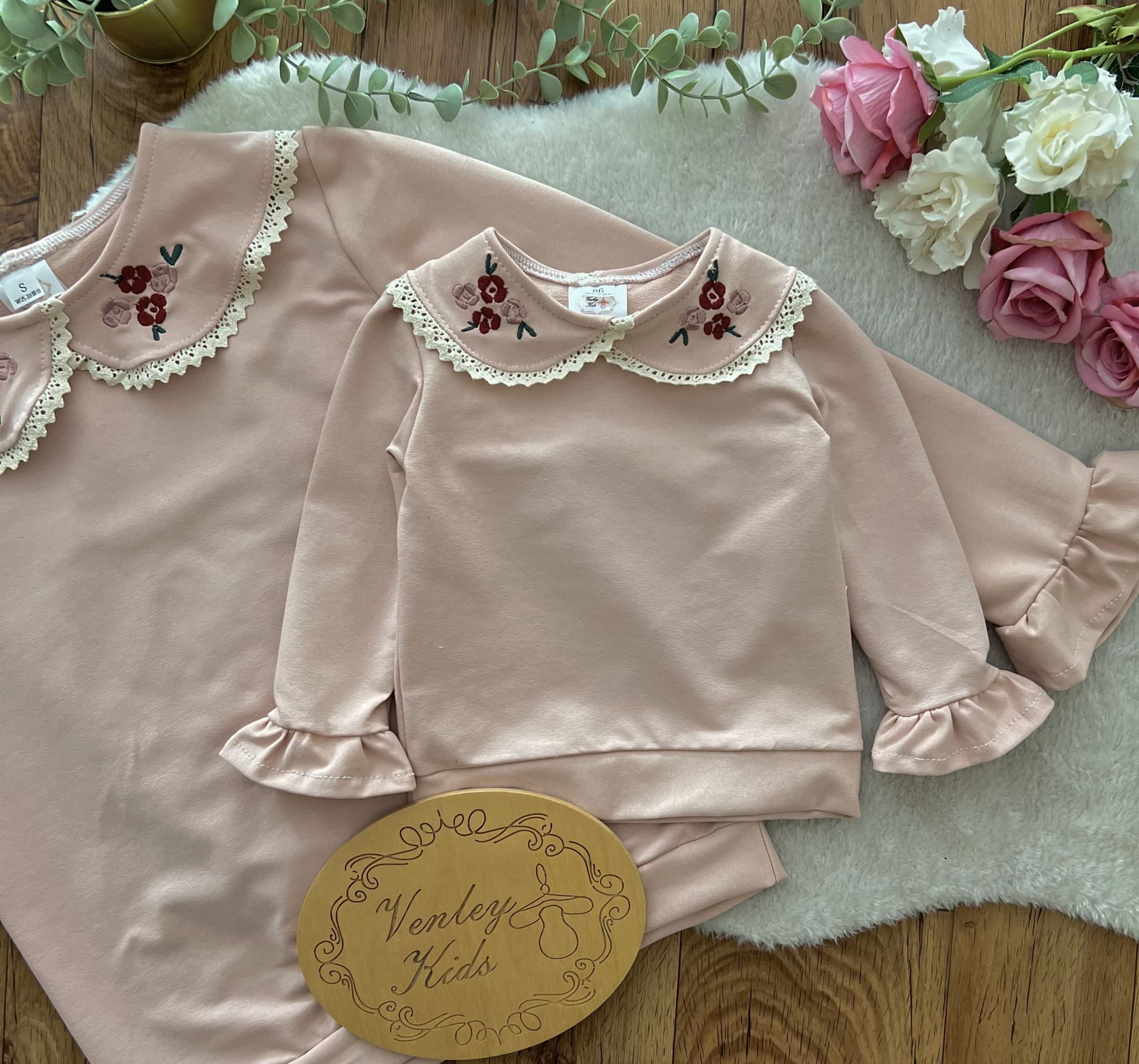 Bluzy MAMA + CÓRKA kwiat brudny róż