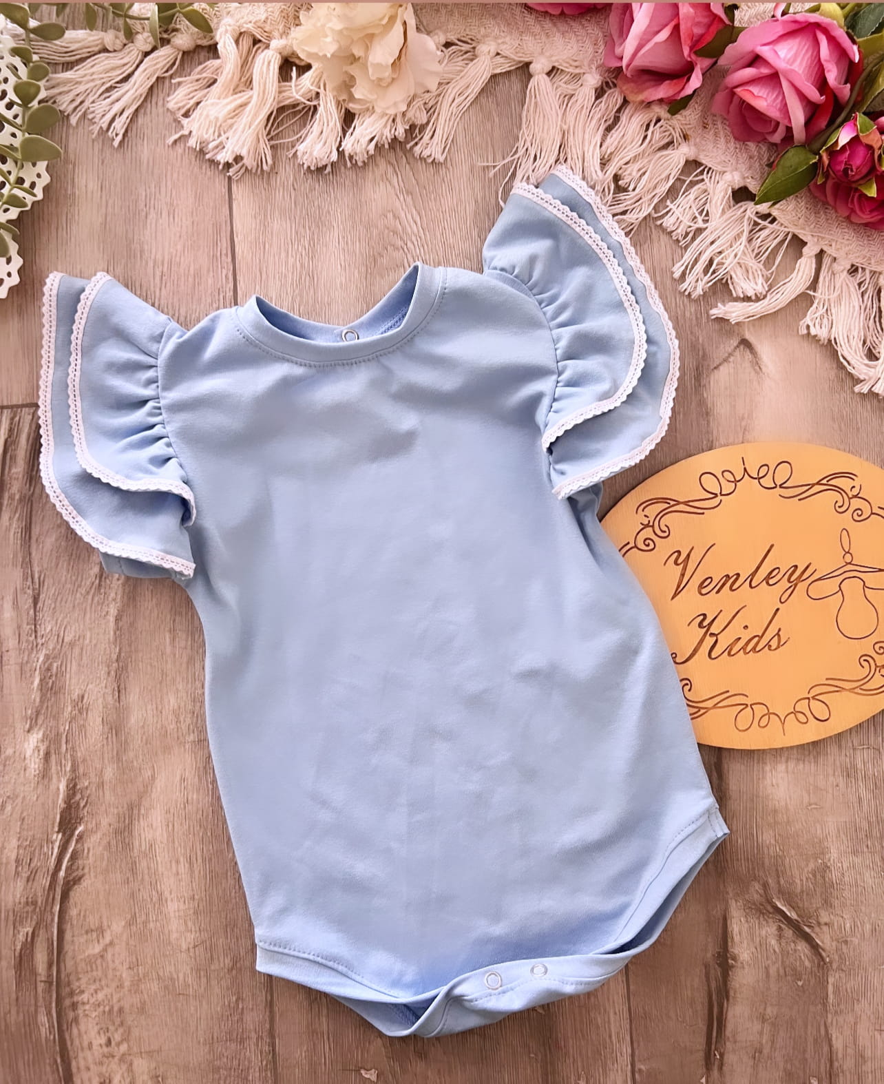 Body / bluzka błękit 2 falbanki koronka