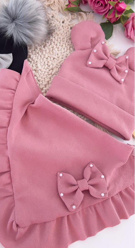Czapka chusta prążek kwarc z perełkami