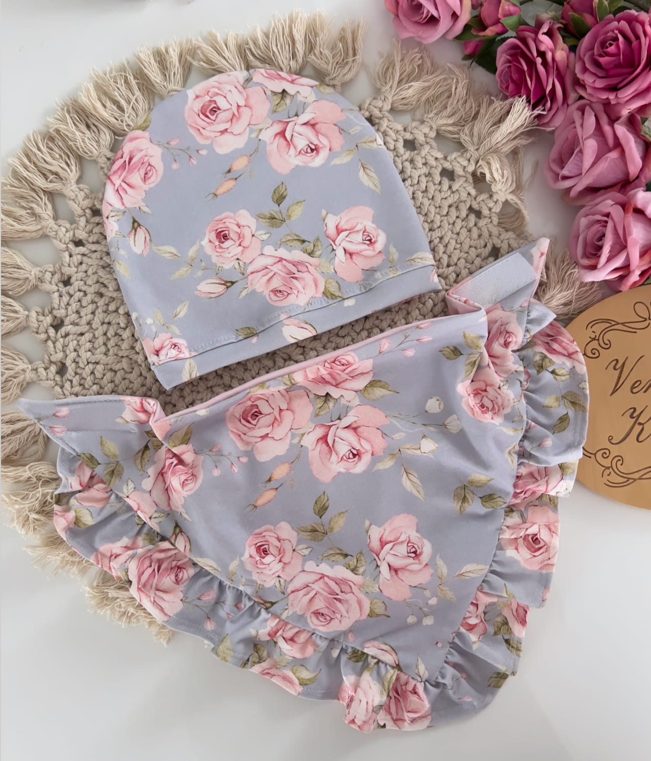 Czapka z chustą RÓŻE NA BŁĘKICIE