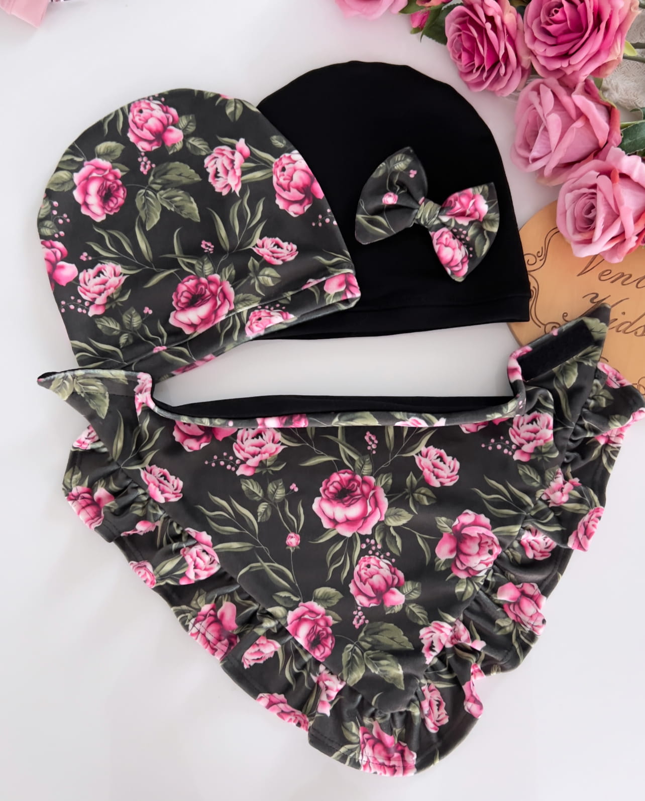 Czapka z chustą RÓŻOWY KWIAT - welurek