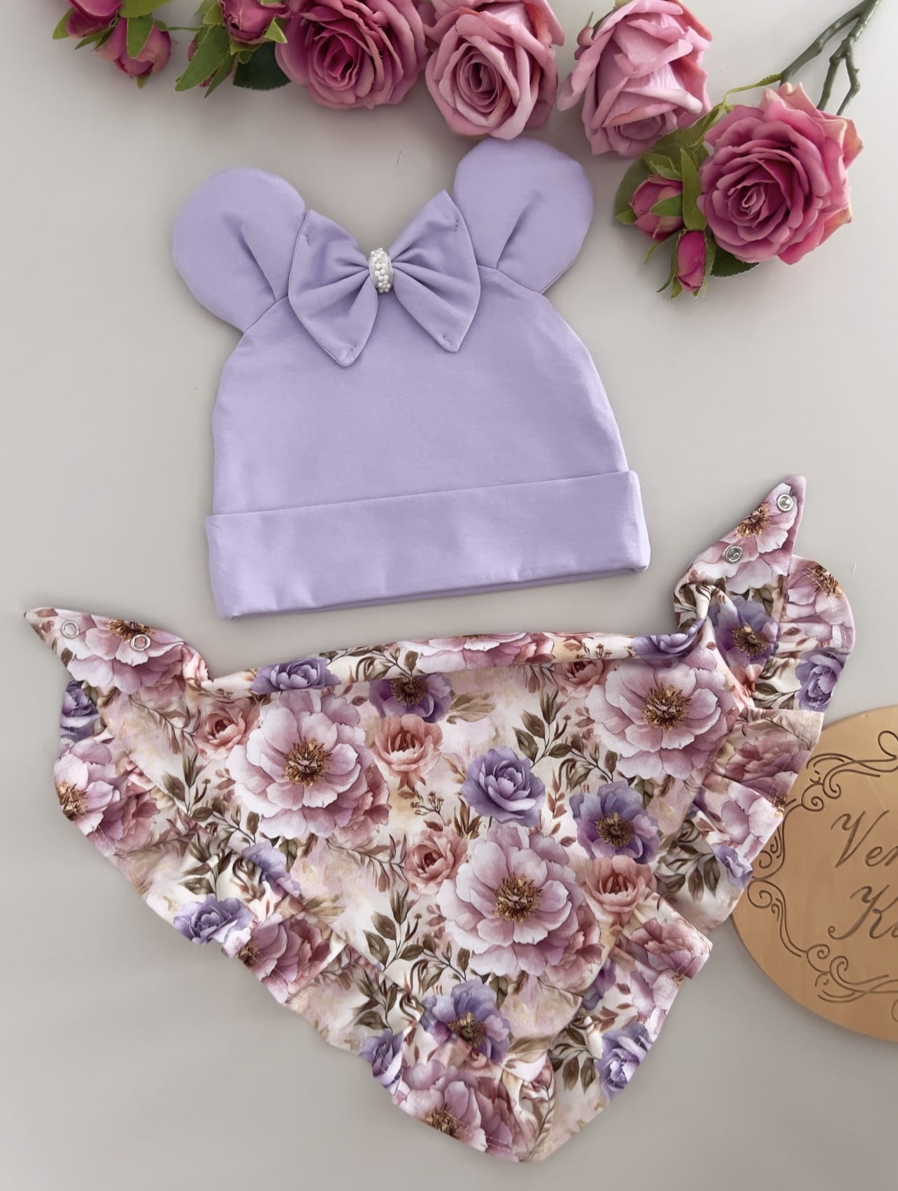Czapka z uszkami + chusta z falbankami