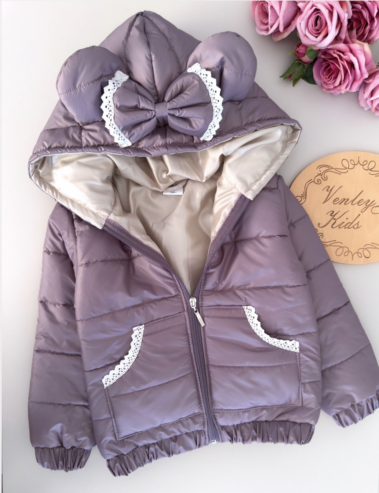 KURTECZKA lawenda z kokardkami i koronką