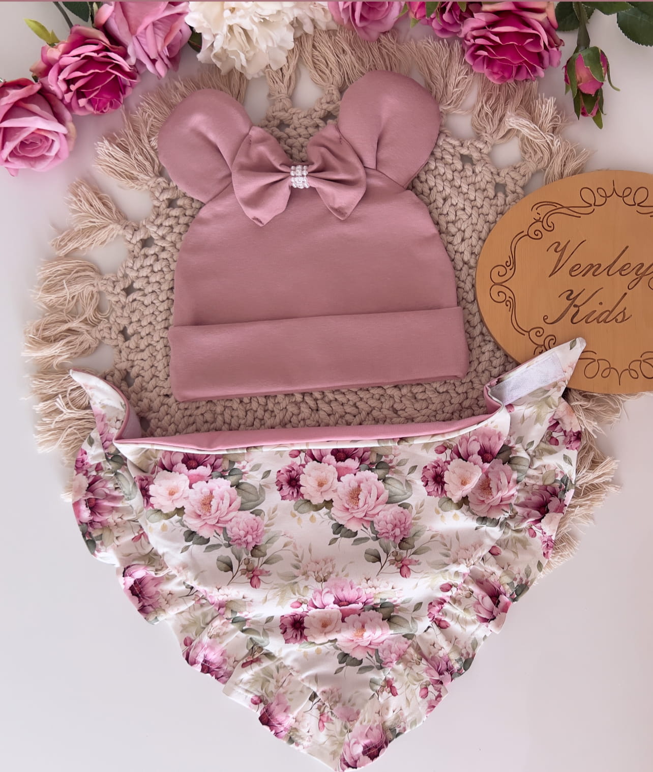 Czapka z uszkami + chusta z falbankami