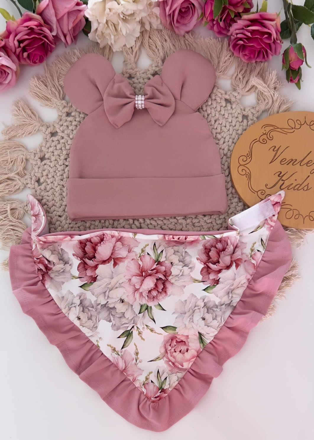 Czapka z uszkami + chusta z falbankami