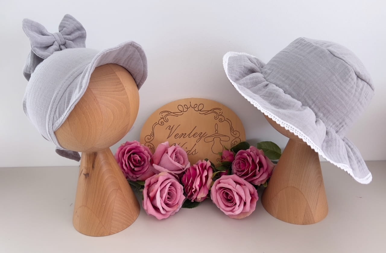 Kapelusik z chustą muślin siwy
