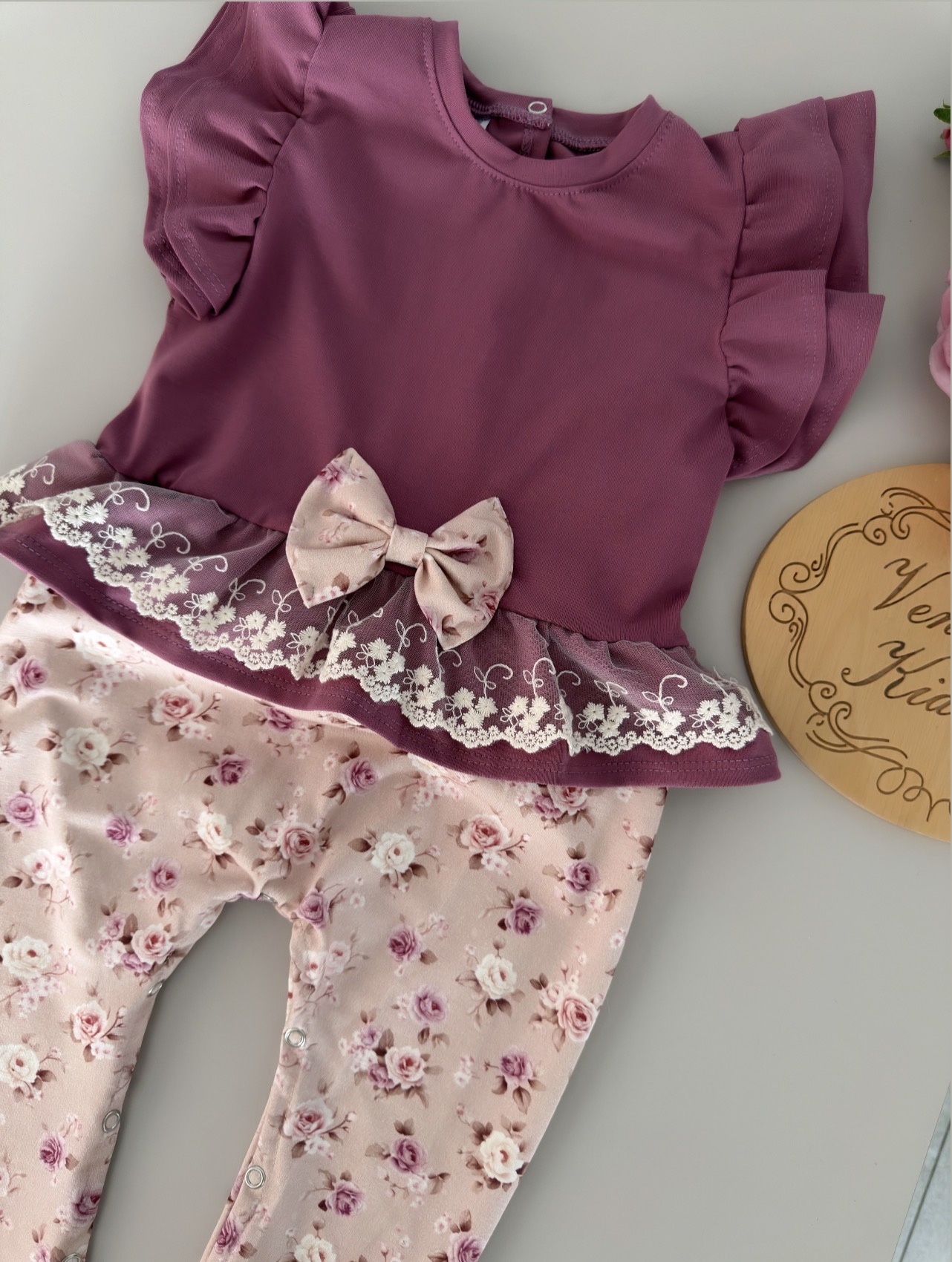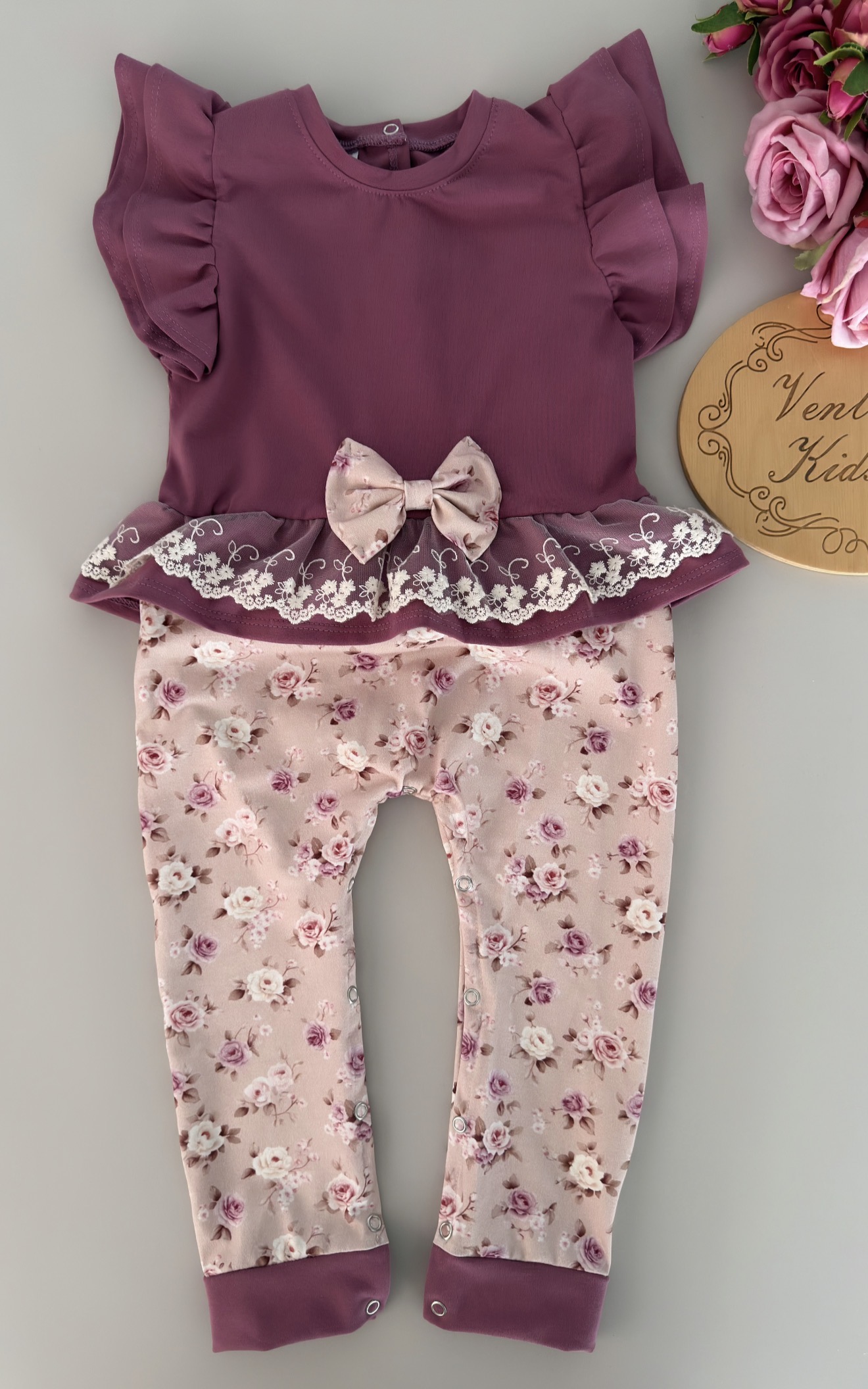 Kombinezon w nogawkach ma napki, które ułatwiają przebieranie dziecka.