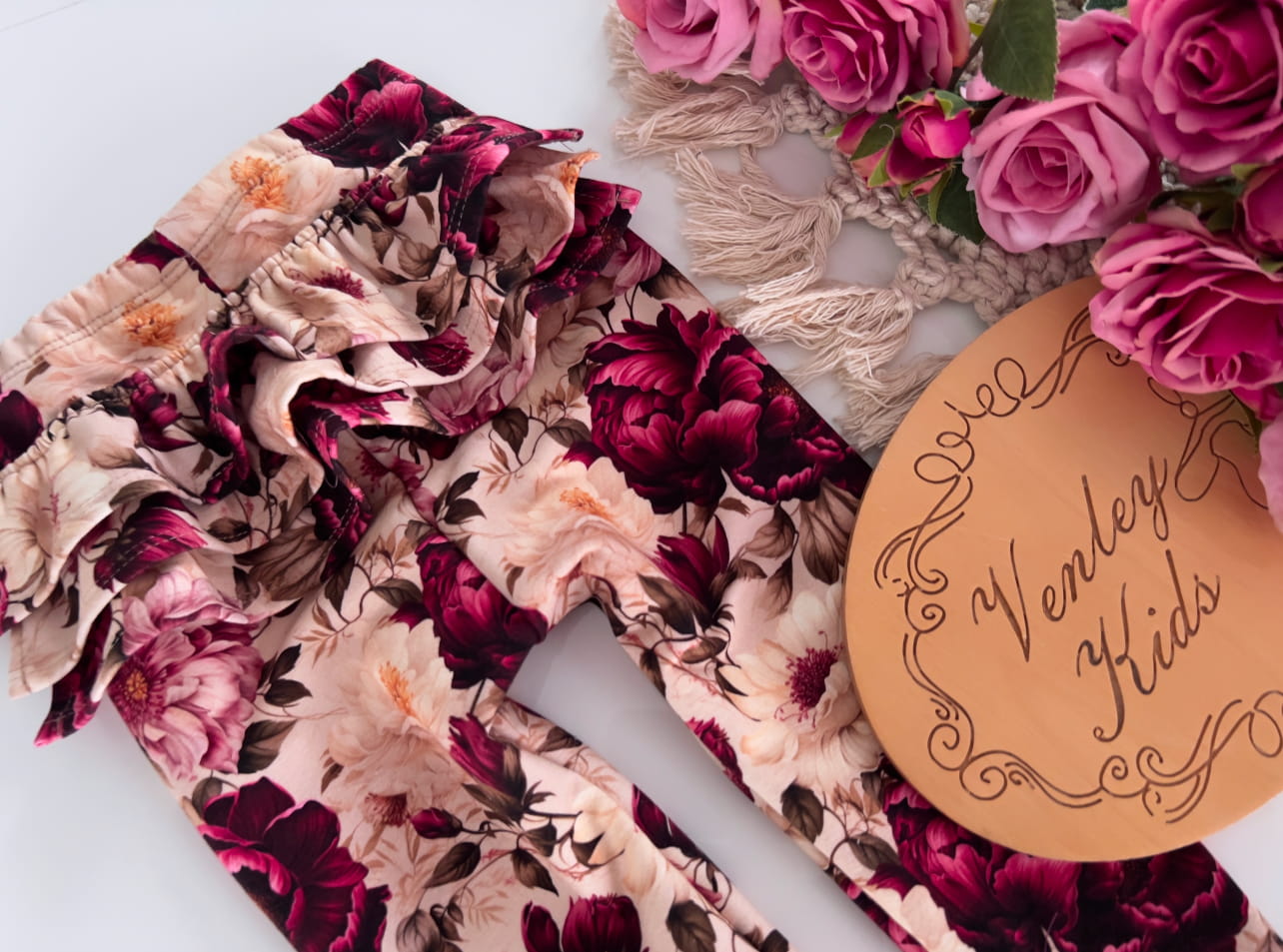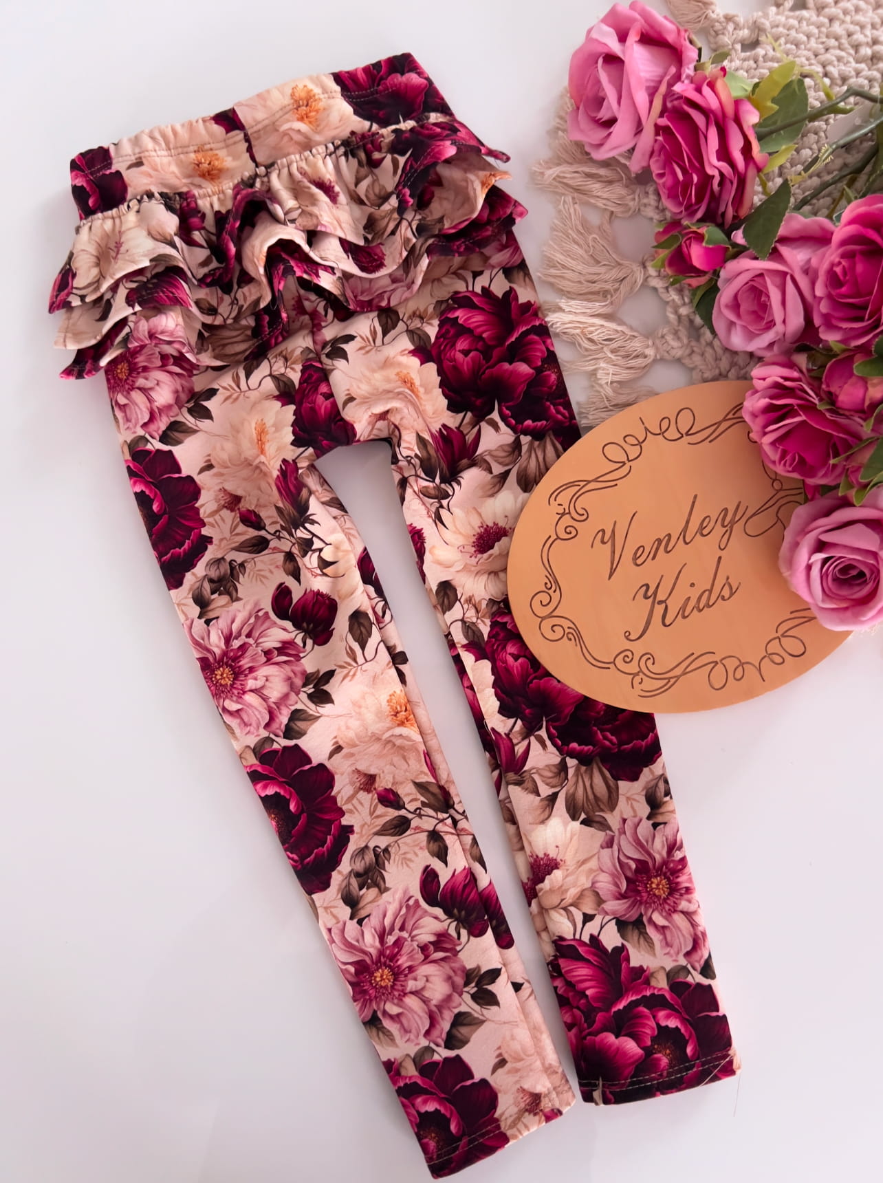 Leginsy BURGUNDOWE KWIATY