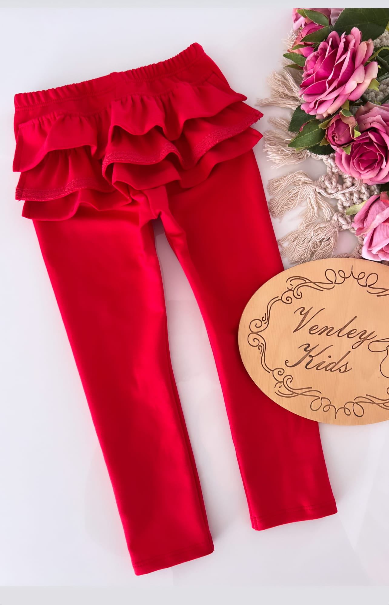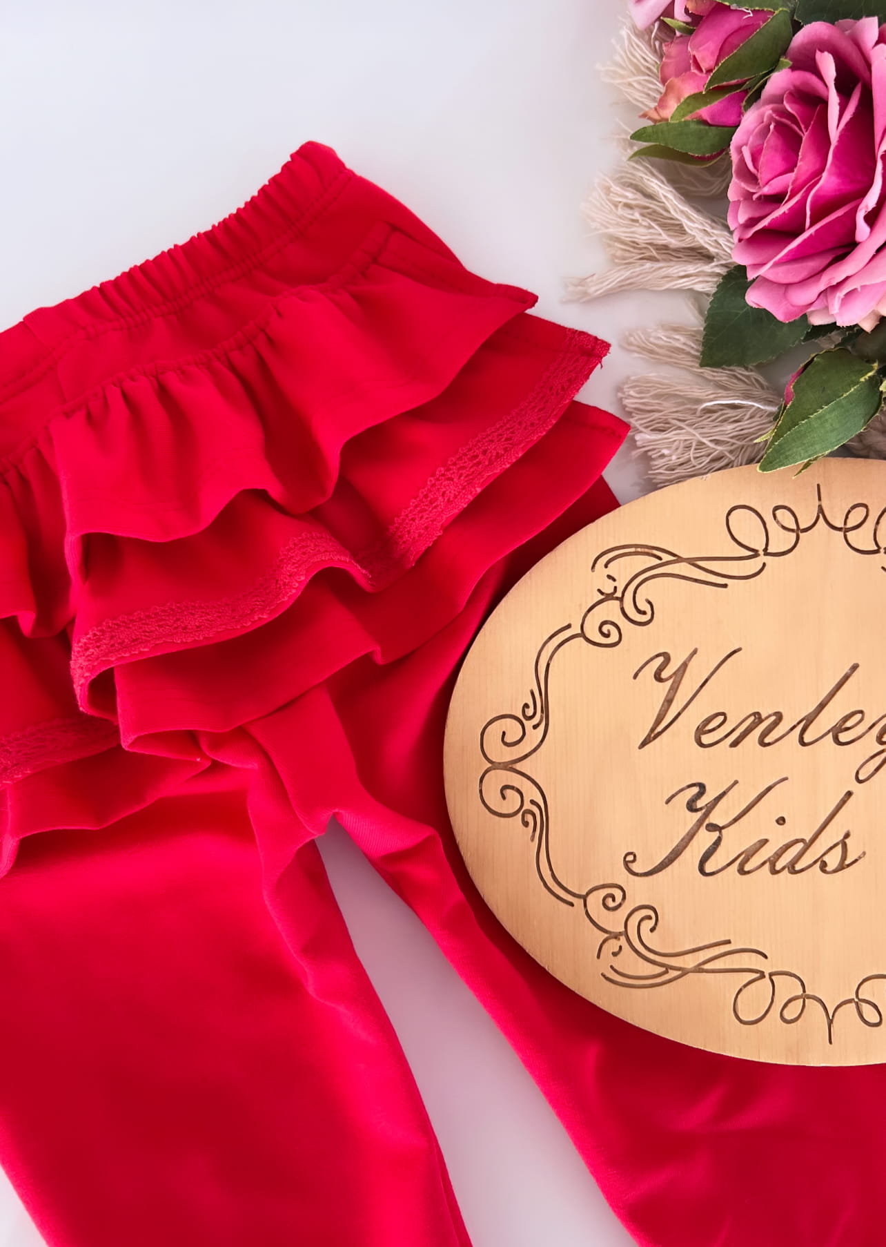 Leginsy CZERWONE z koronką