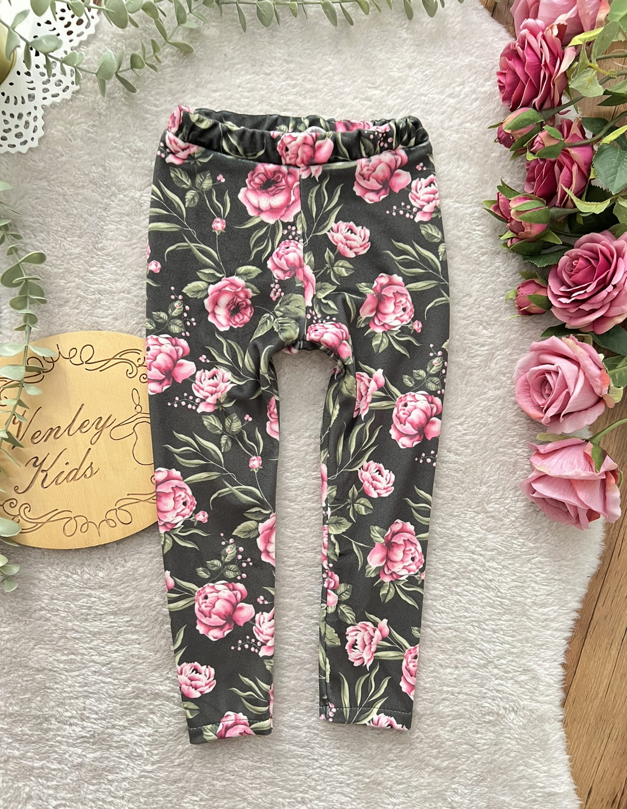 Leginsy WELUREK RÓŻOWE KWIATY