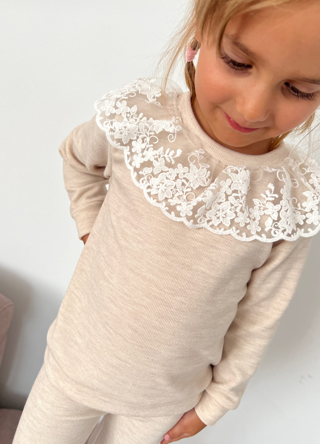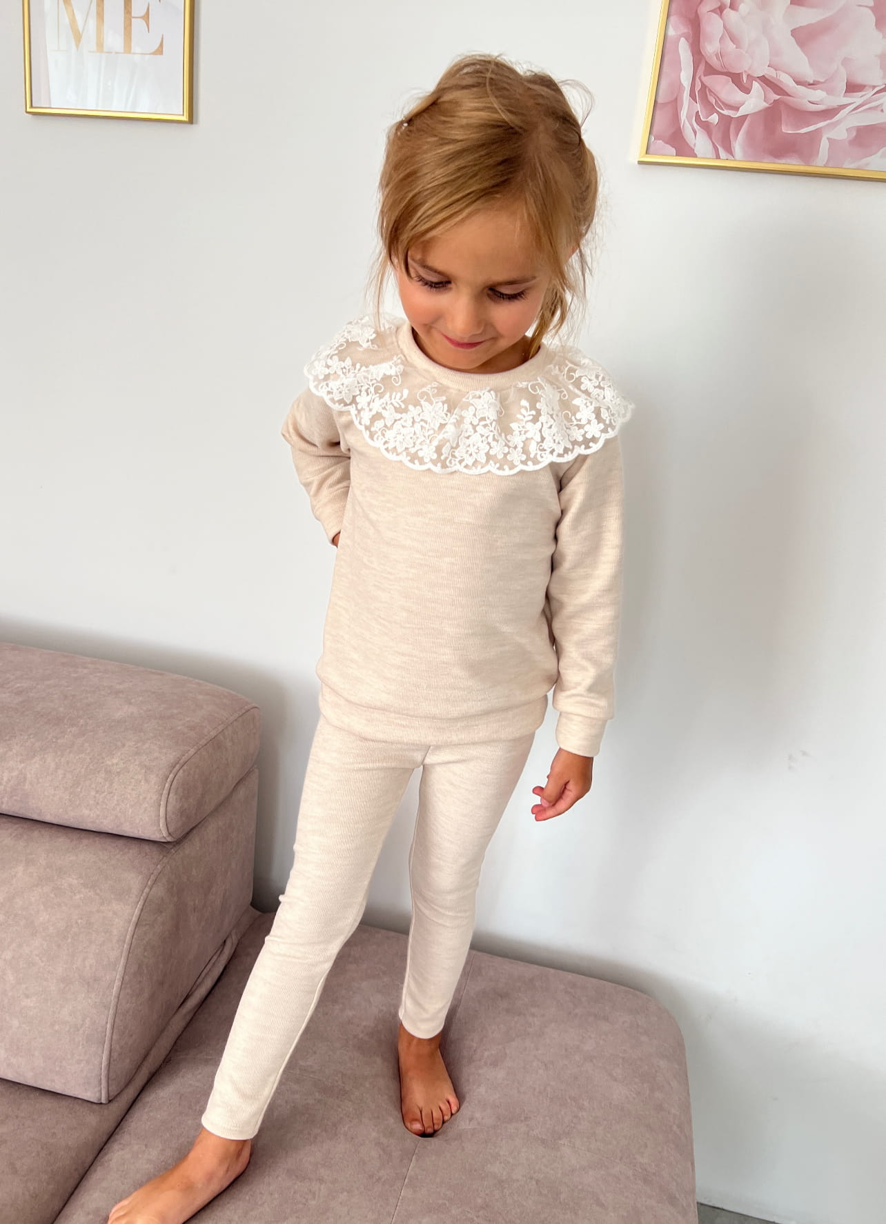 Sweterek w przepięknym kolorze beżowego melanżu , prążek