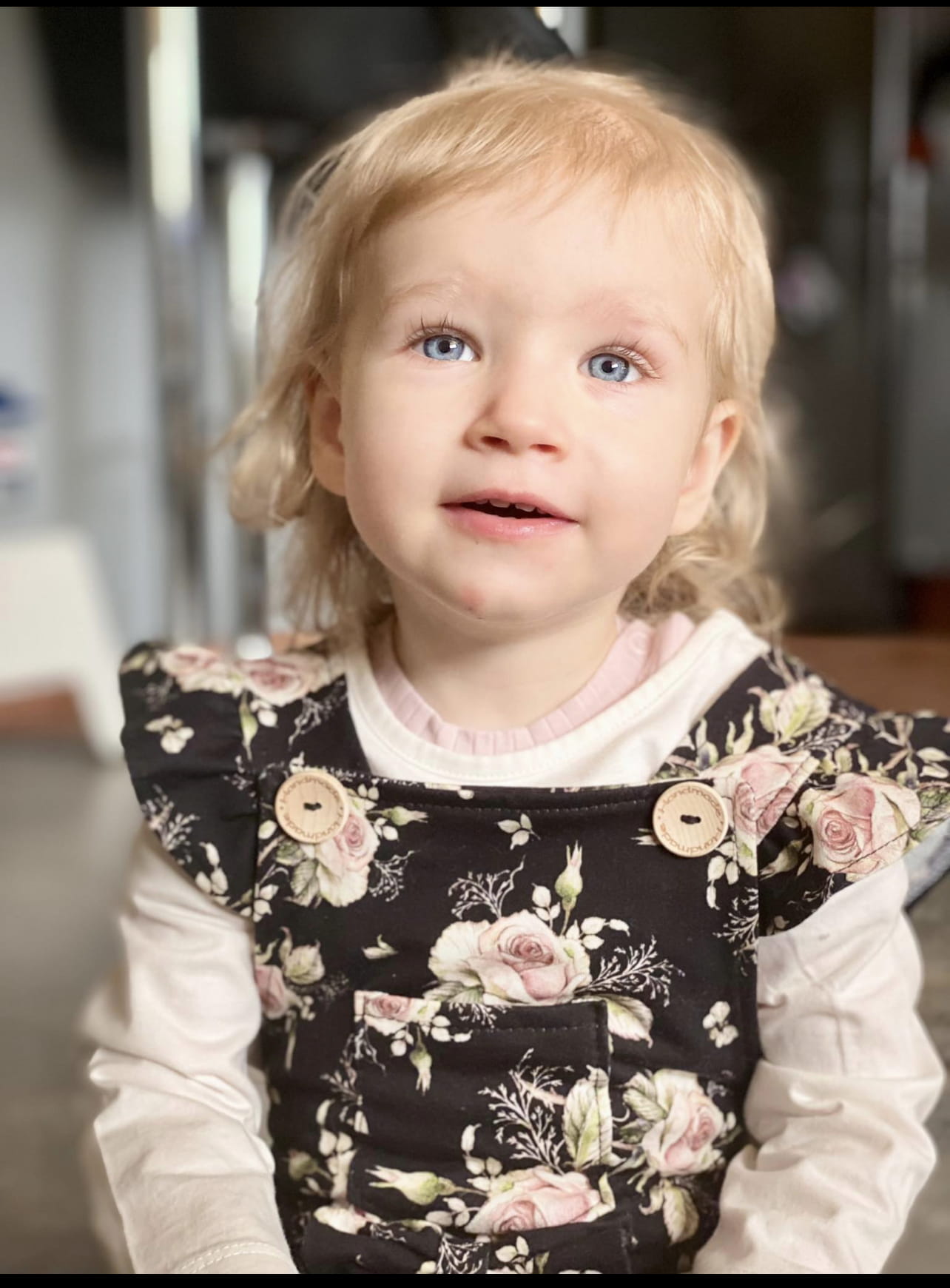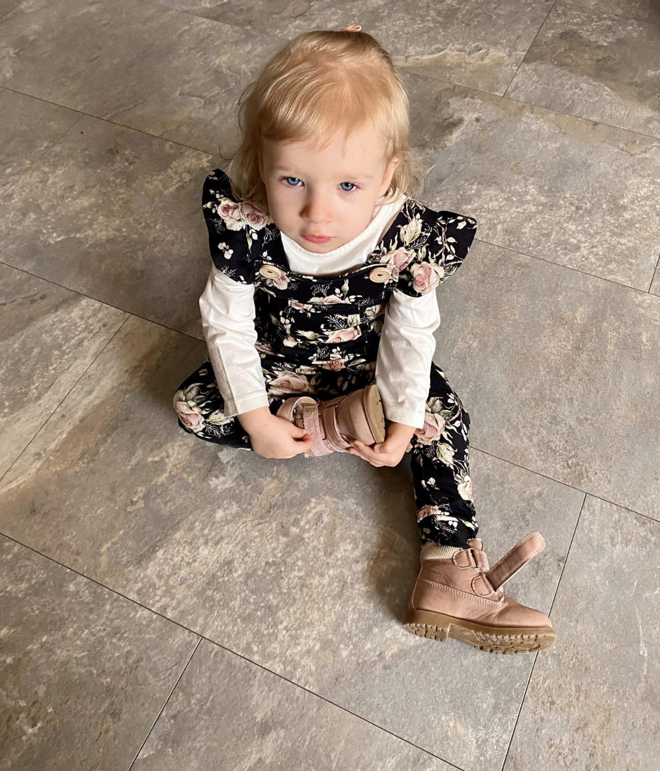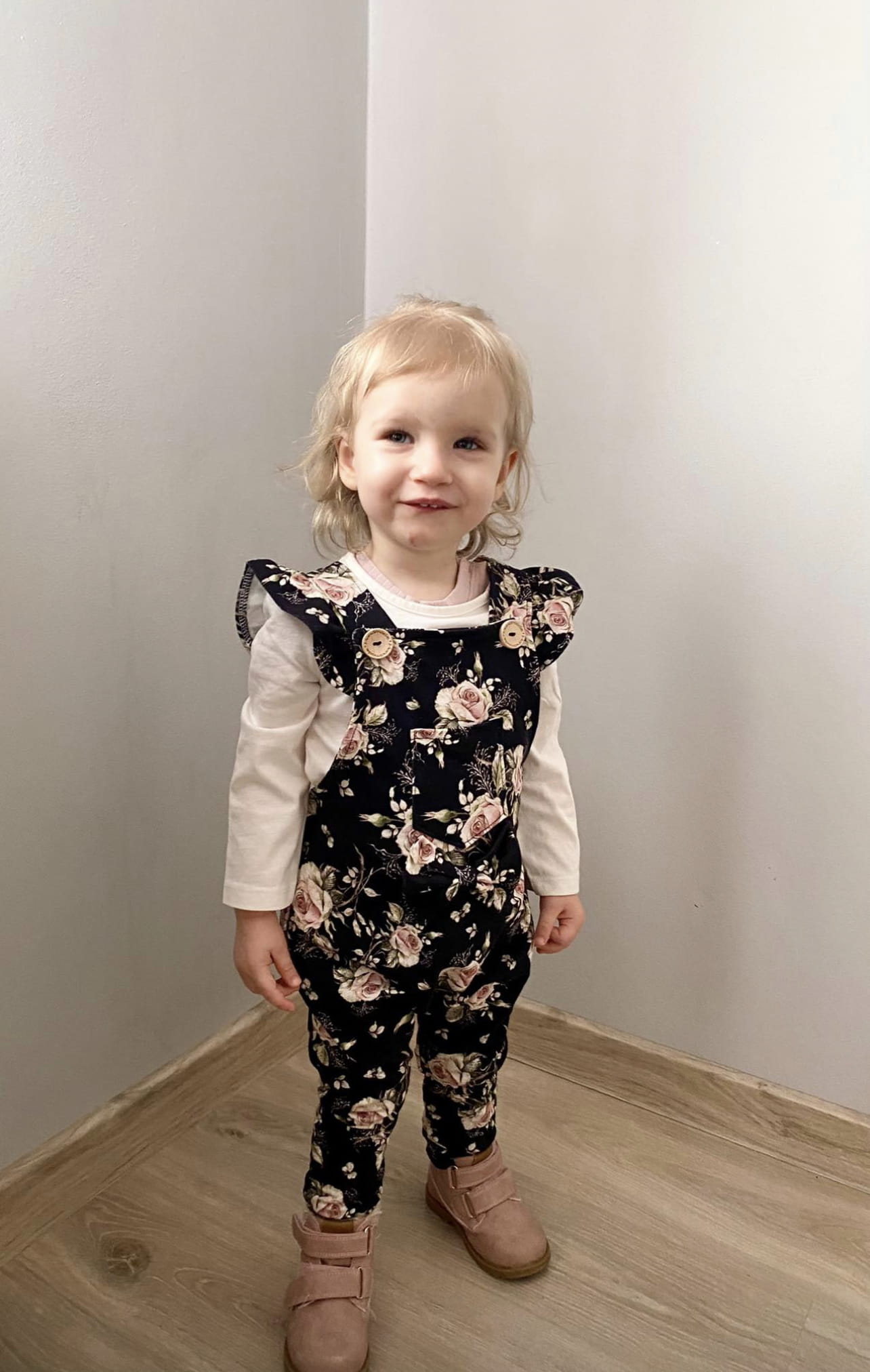 Na ramiączkach falbanki, na przodzie kieszonka i kokardka