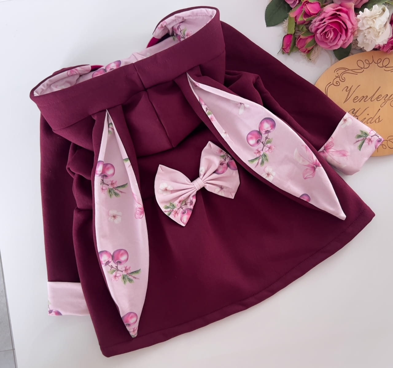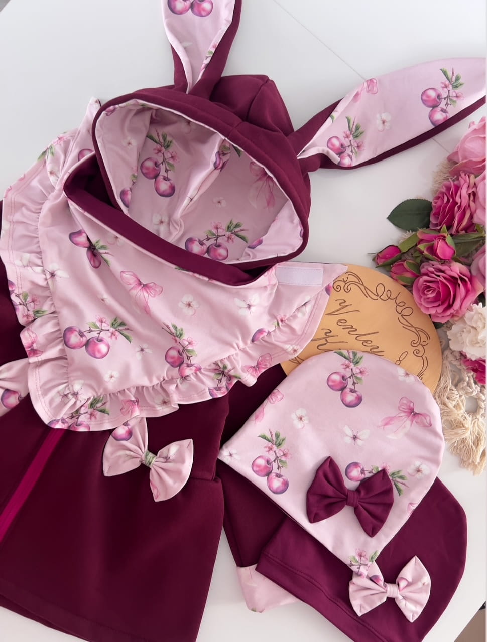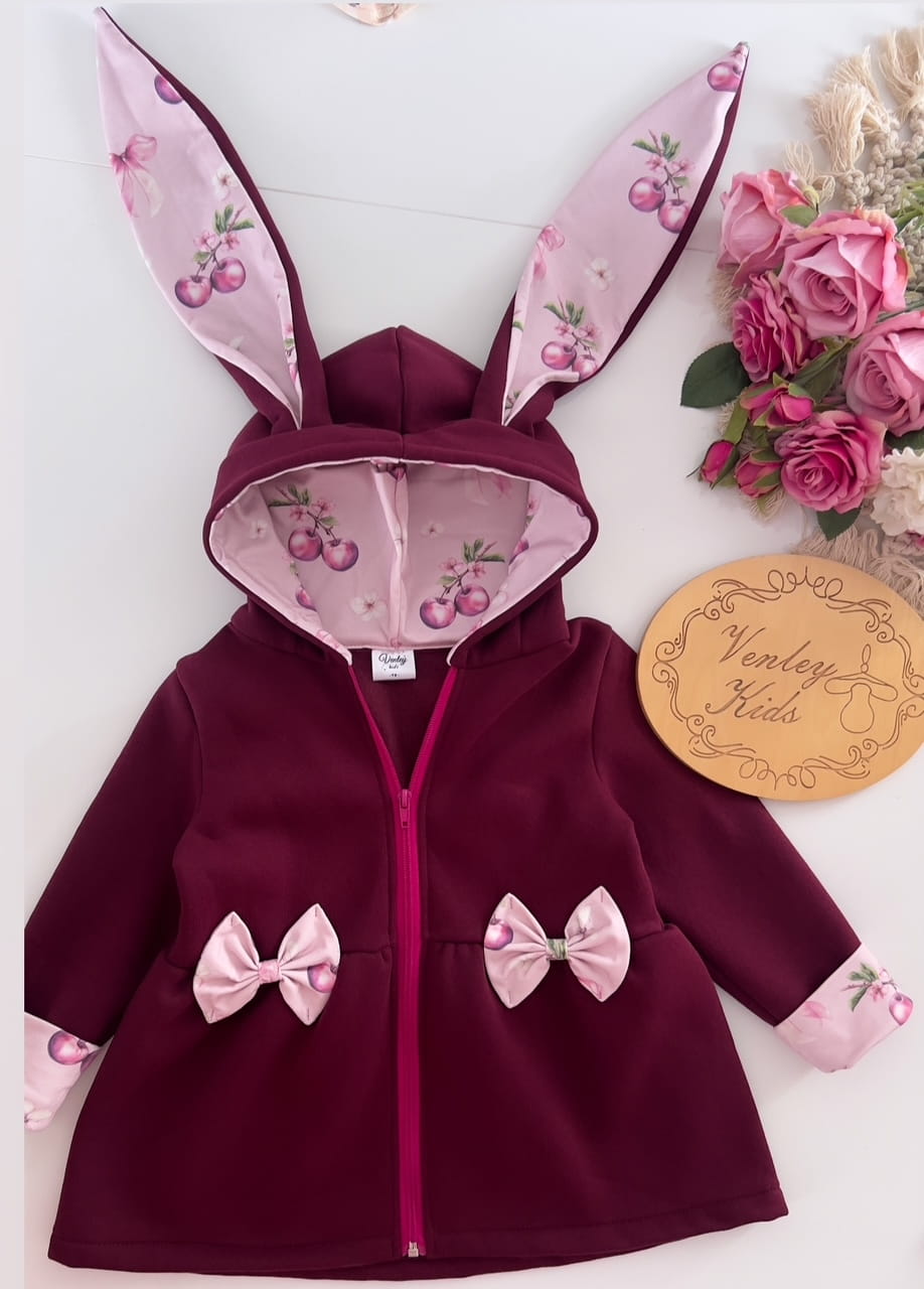Płaszczyk Królik bordo + wisienki