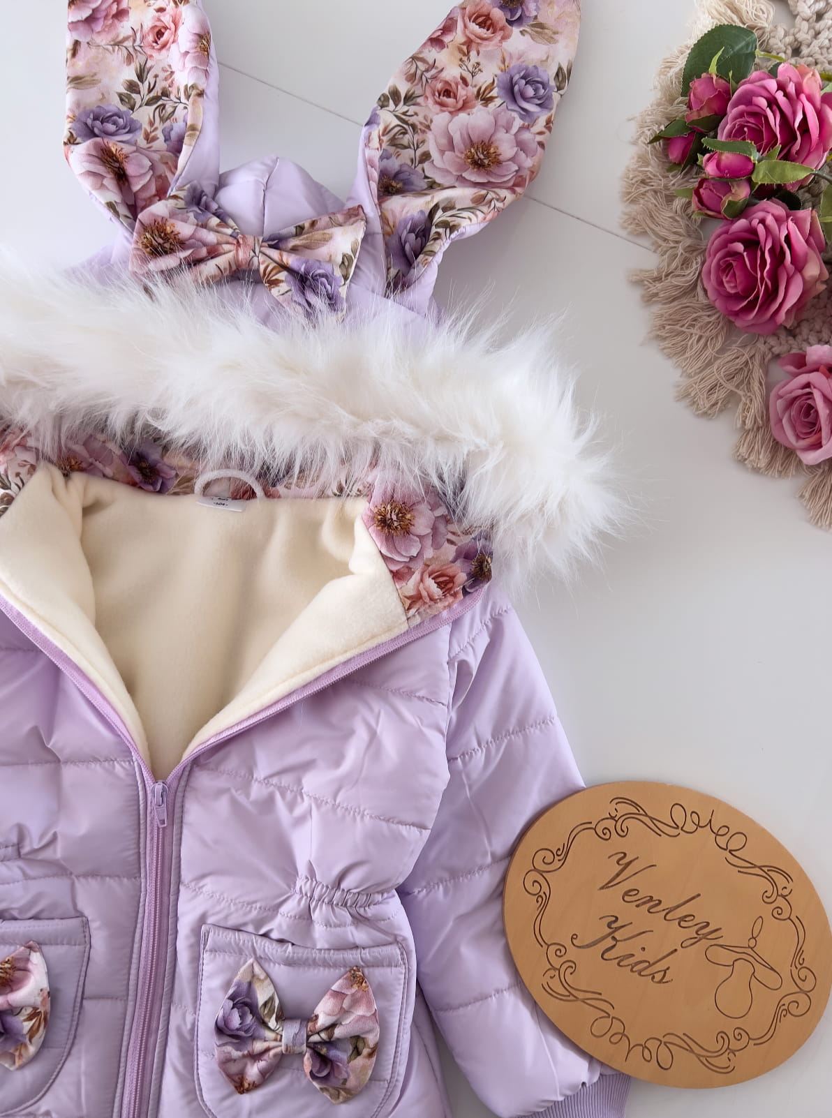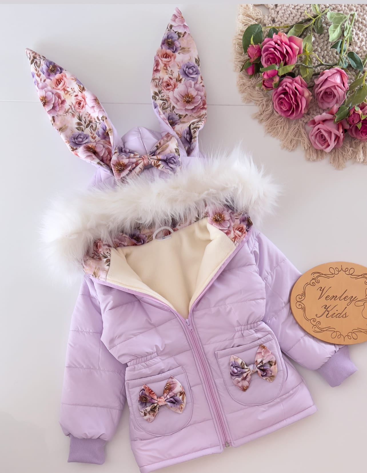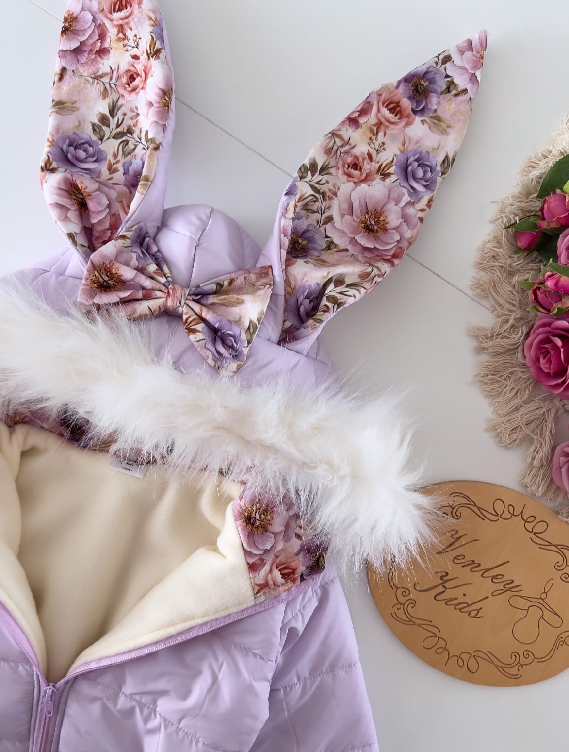 Cały kapturek obszyty mięciutkim futerkiem + uszy królika i kokardka