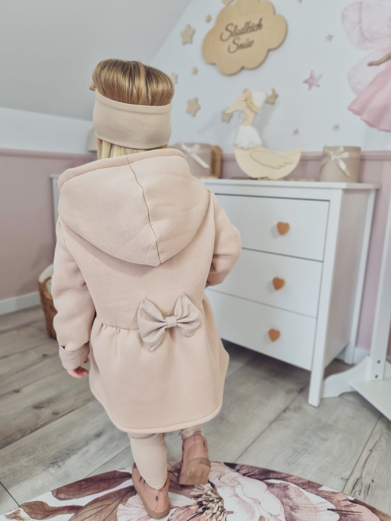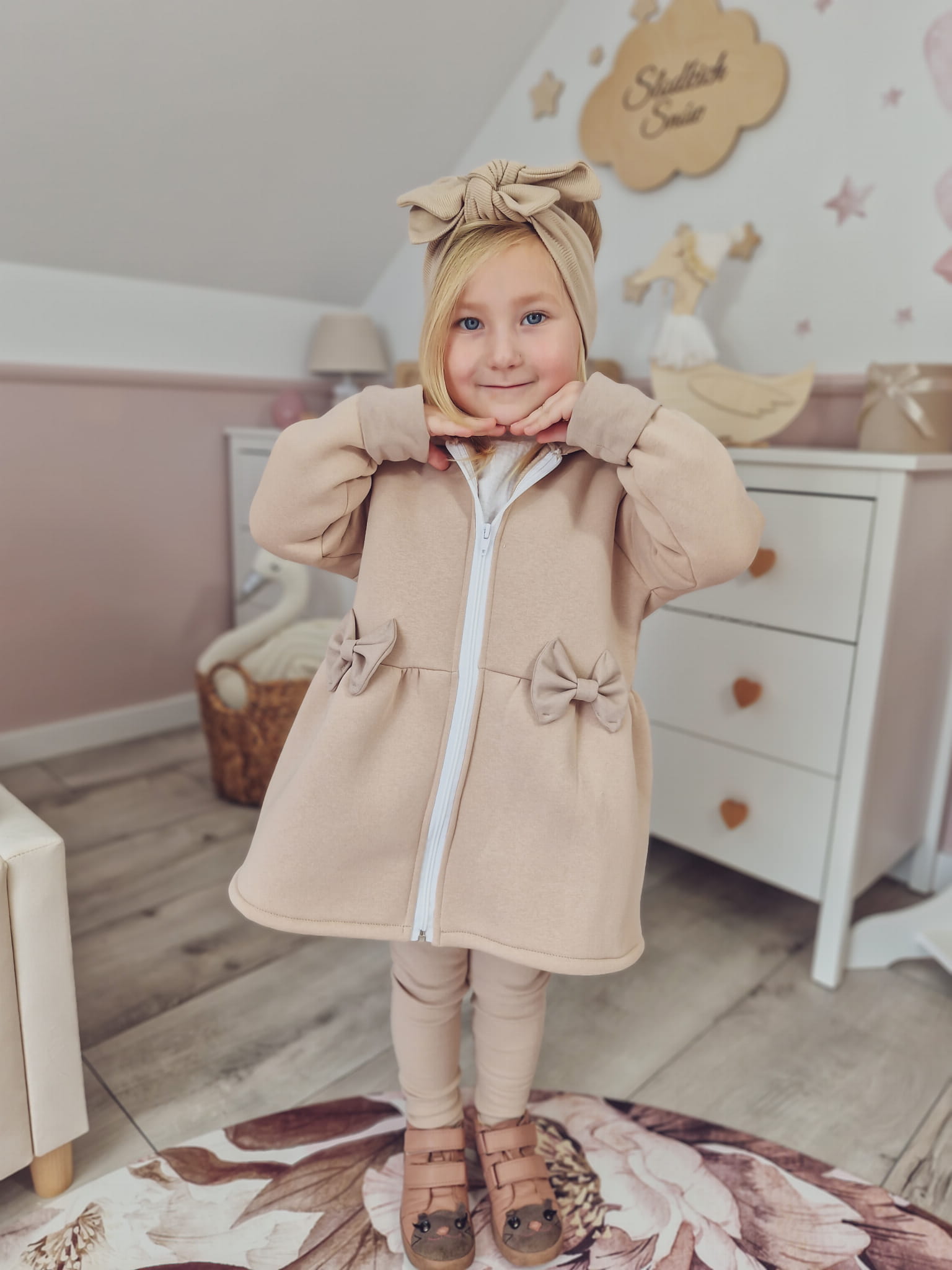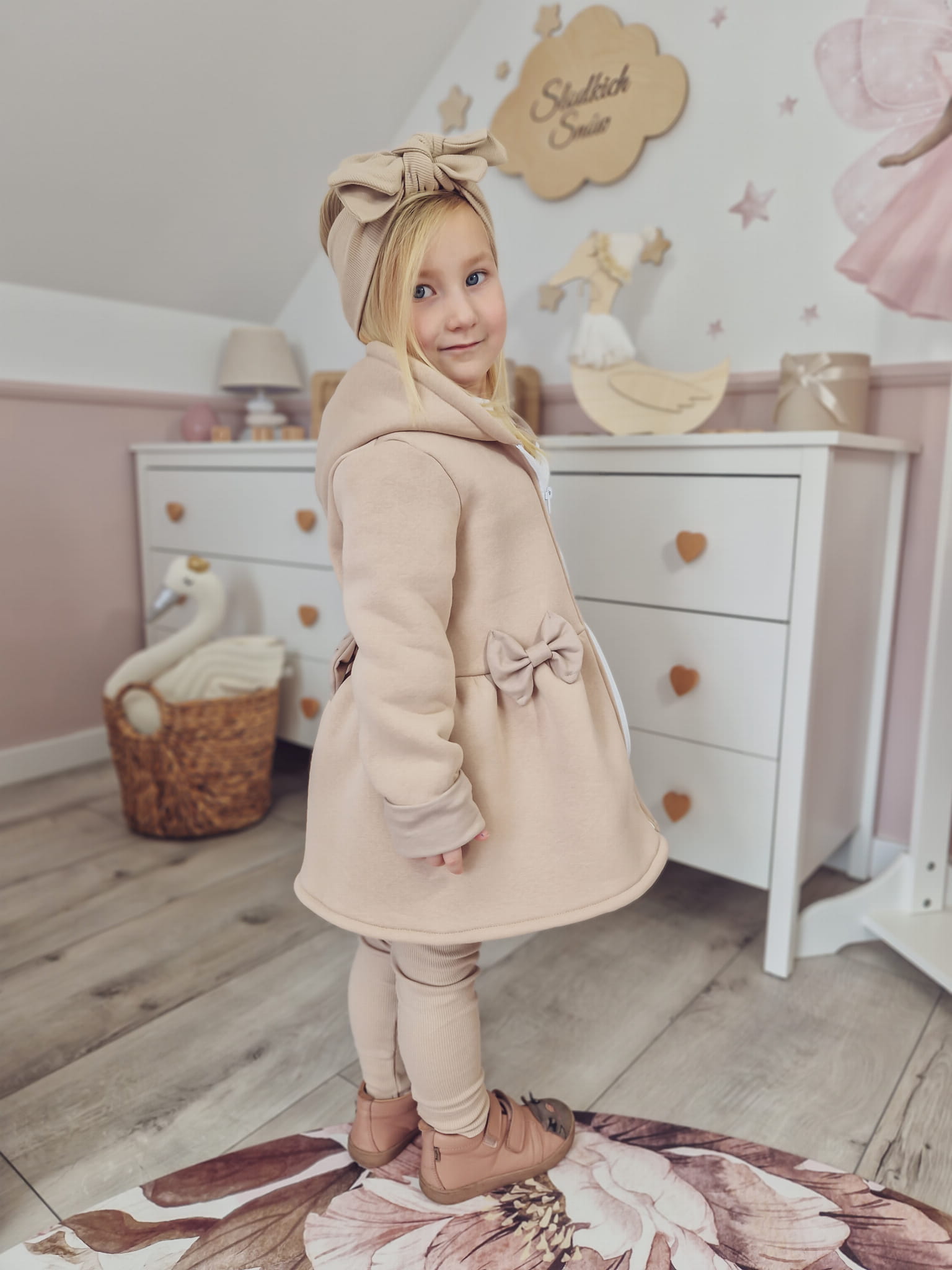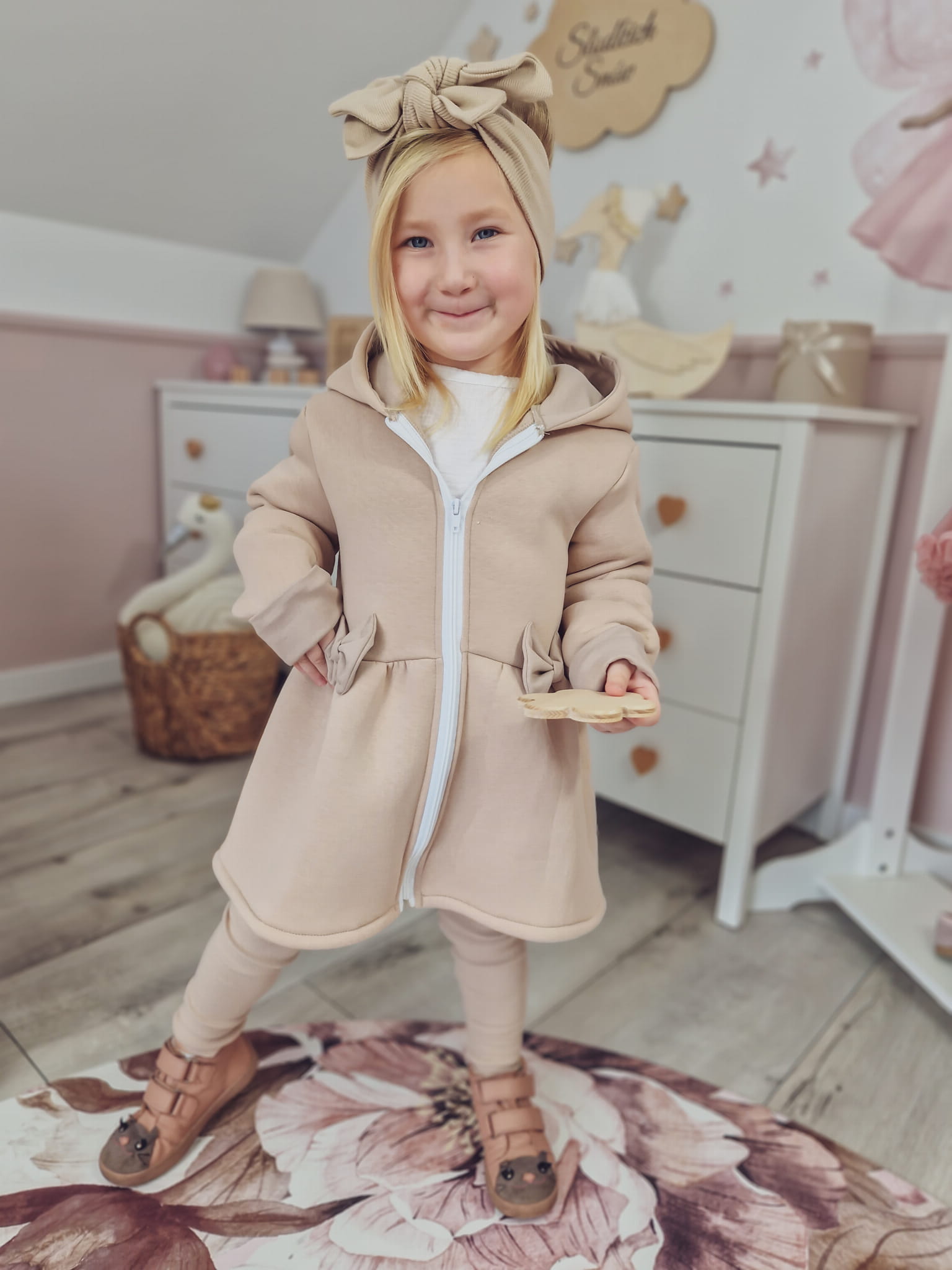 Płaszczyk z kapturem beż z kokardkami