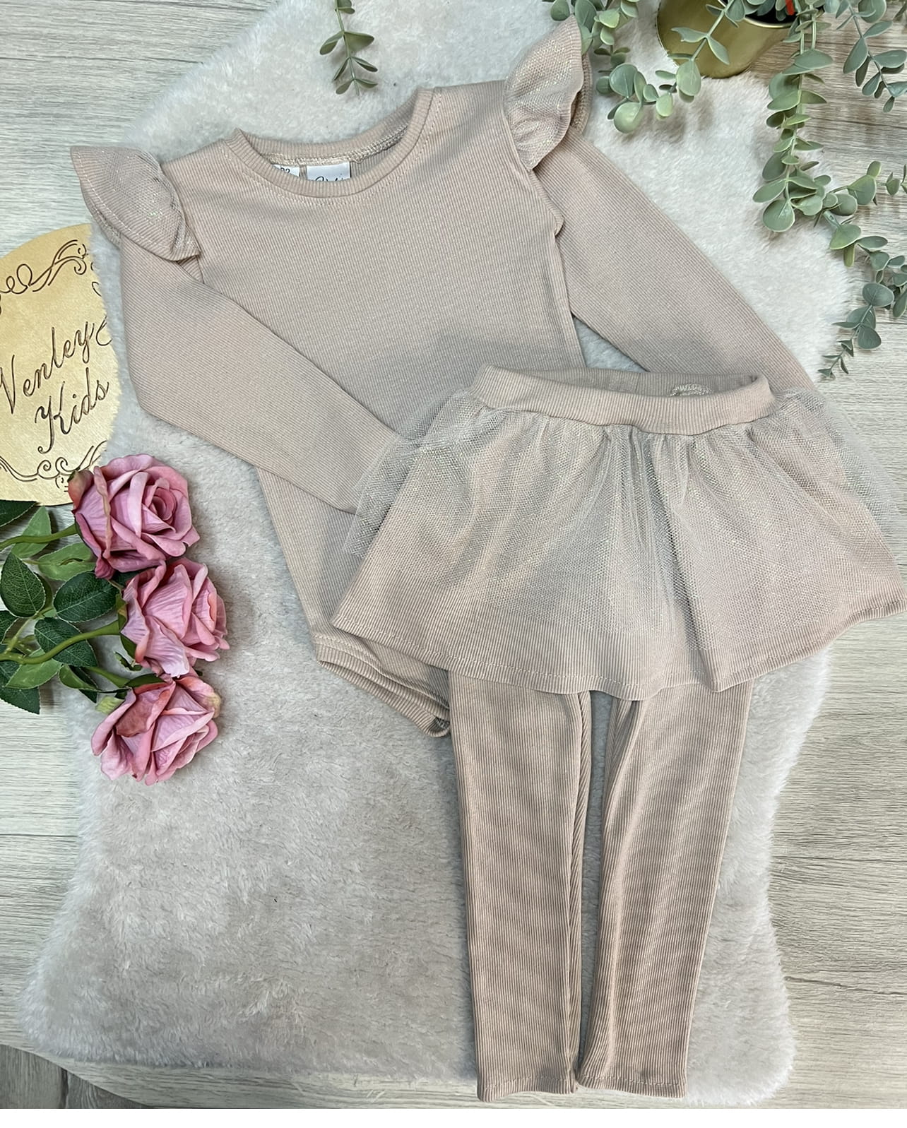 Zestaw prążkowany z dodatkiem tiulu z brokatem