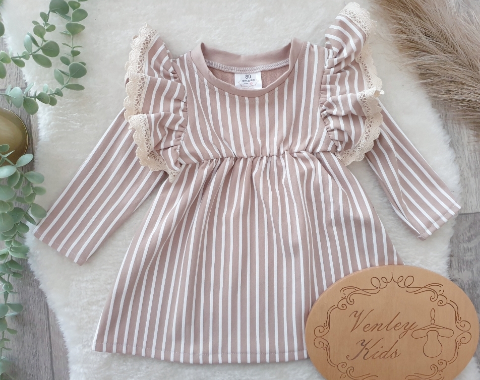 R.80 Sukienka PASECZKI BEŻ z koronką