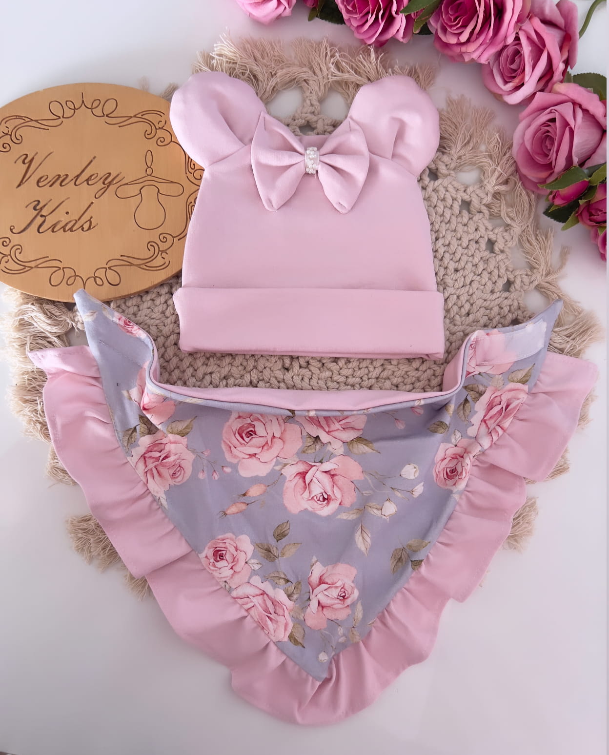 Czapka z uszkami + chusta z falbankami