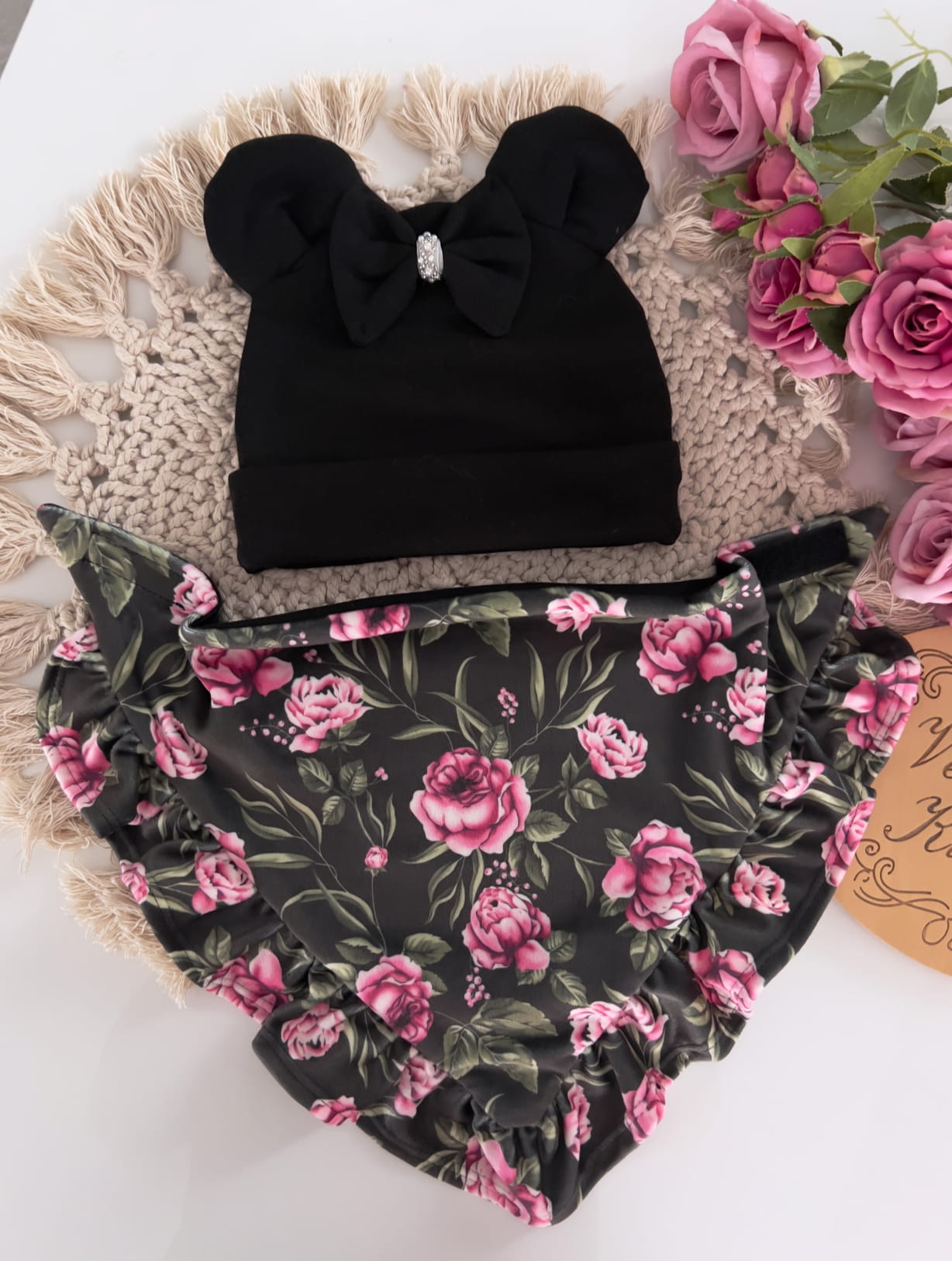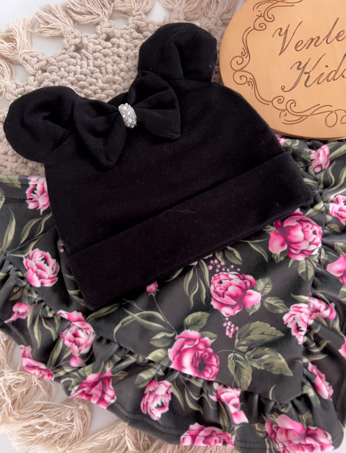 Czapka z uszkami + chusta z falbankami