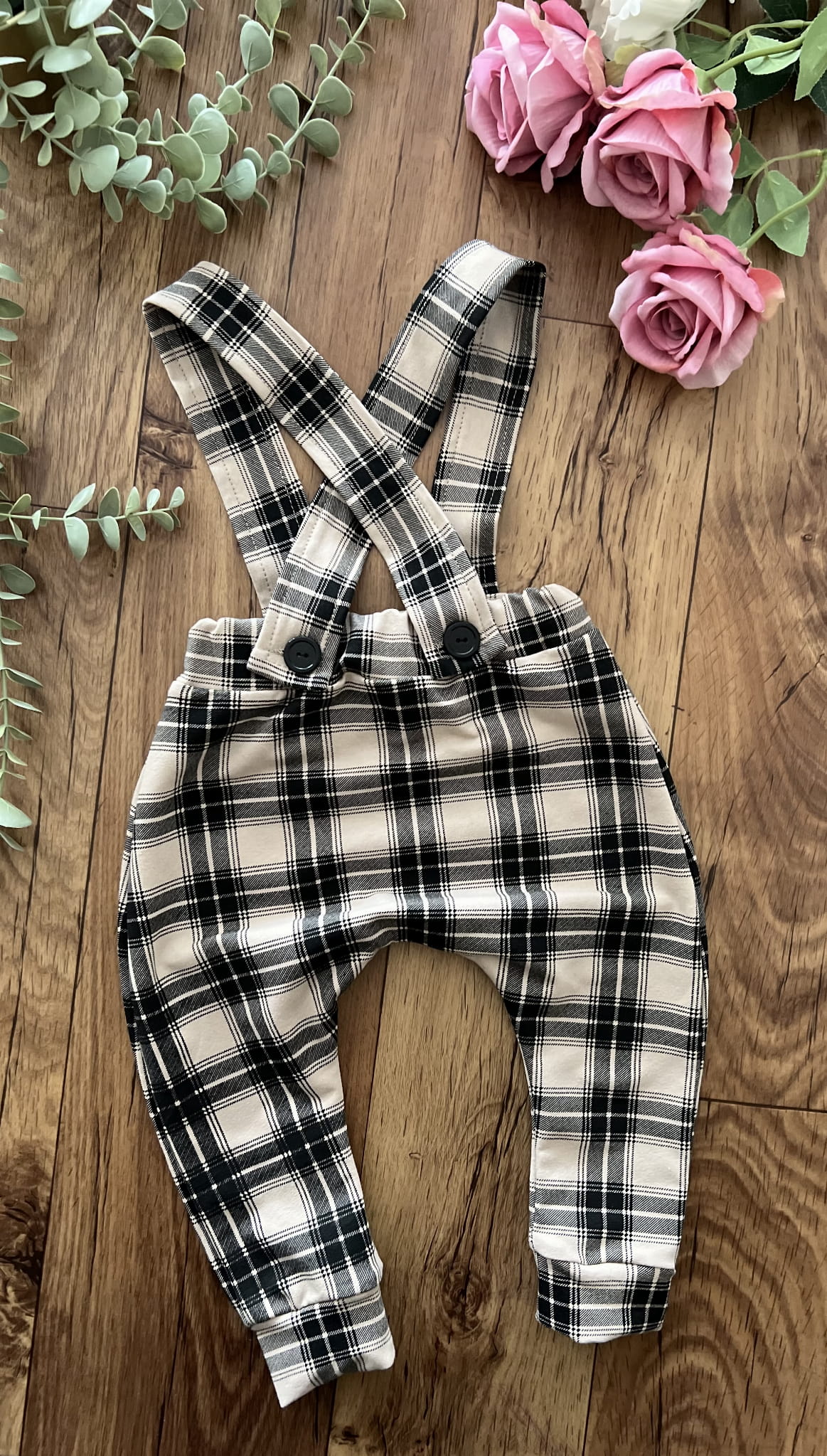 Spodnie ogrodniczki krateczka beż