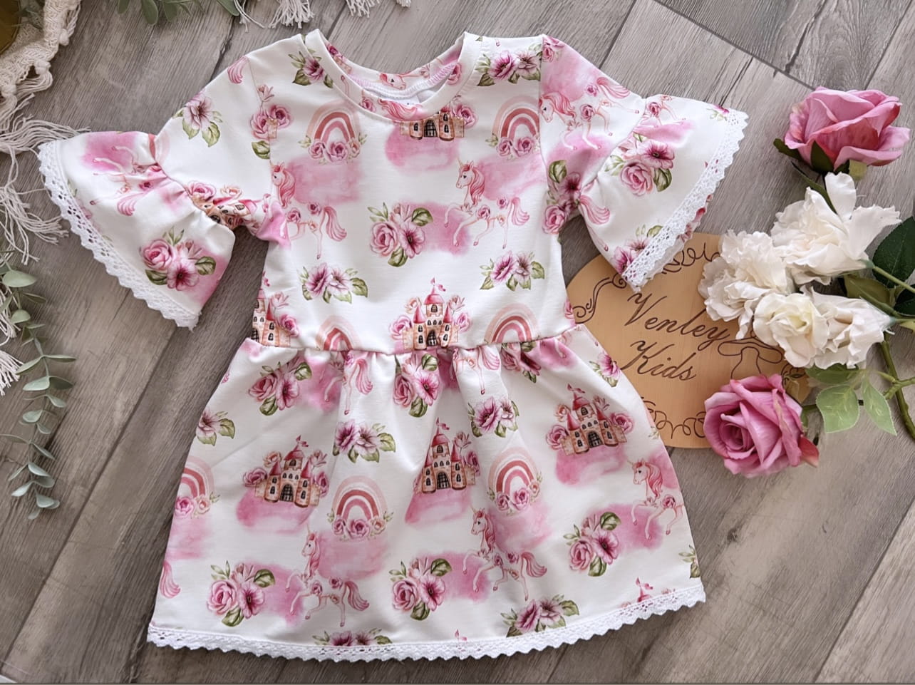 Sukienka rozkloszowana , z krótkim poszerzanym rękawkiem