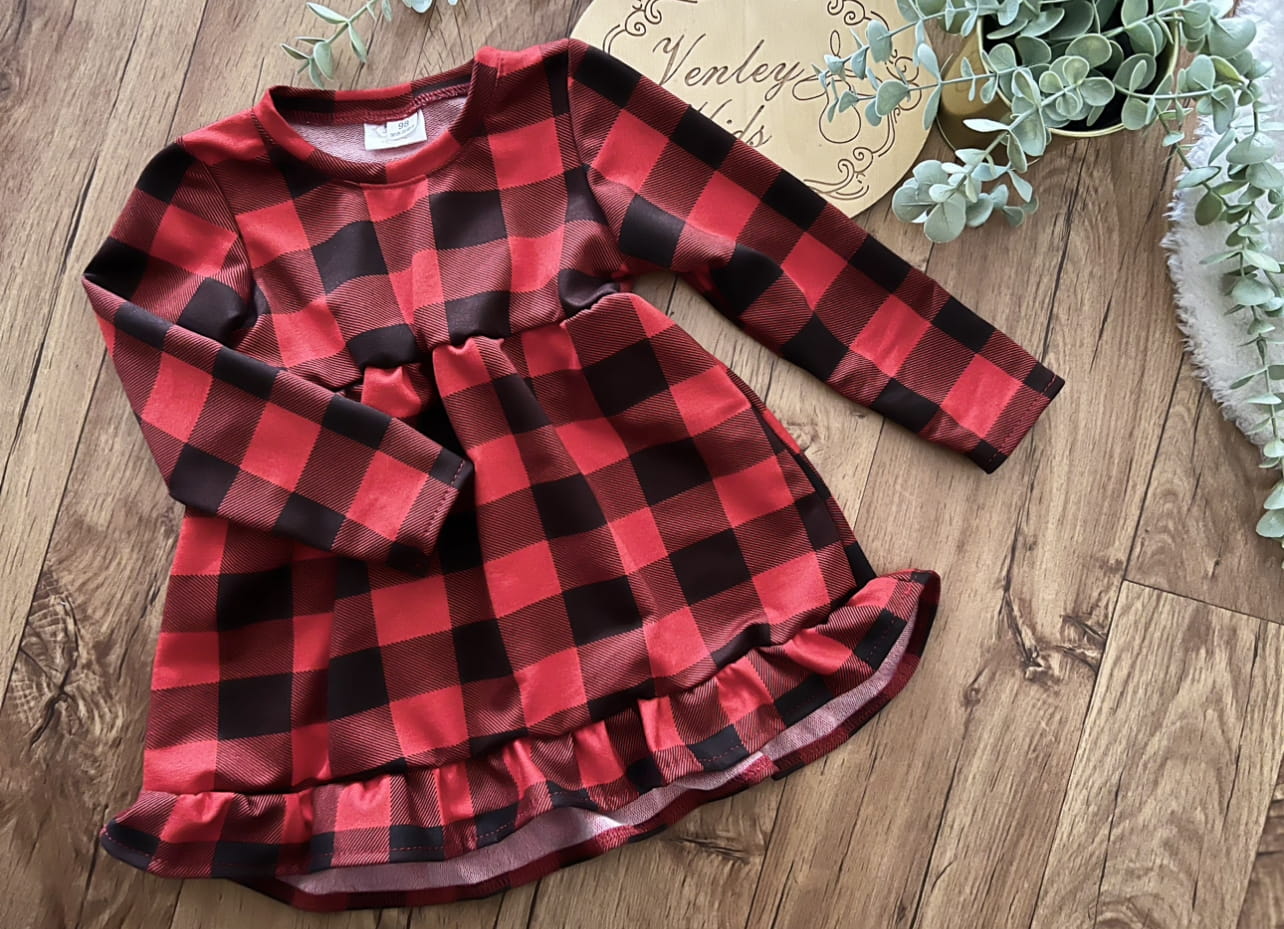 Tunika rozkloszowana kratka czerwono czarna