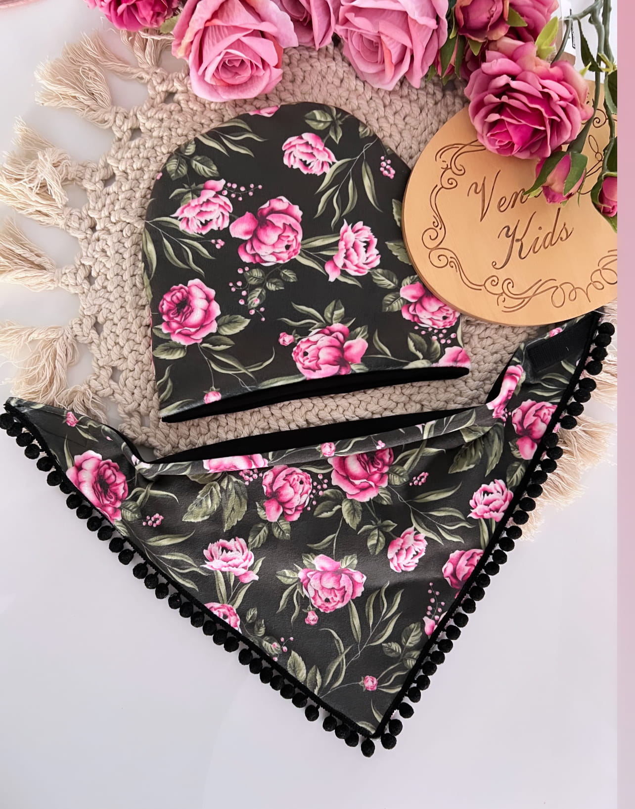 WELUR różowy kwiat z czarnym