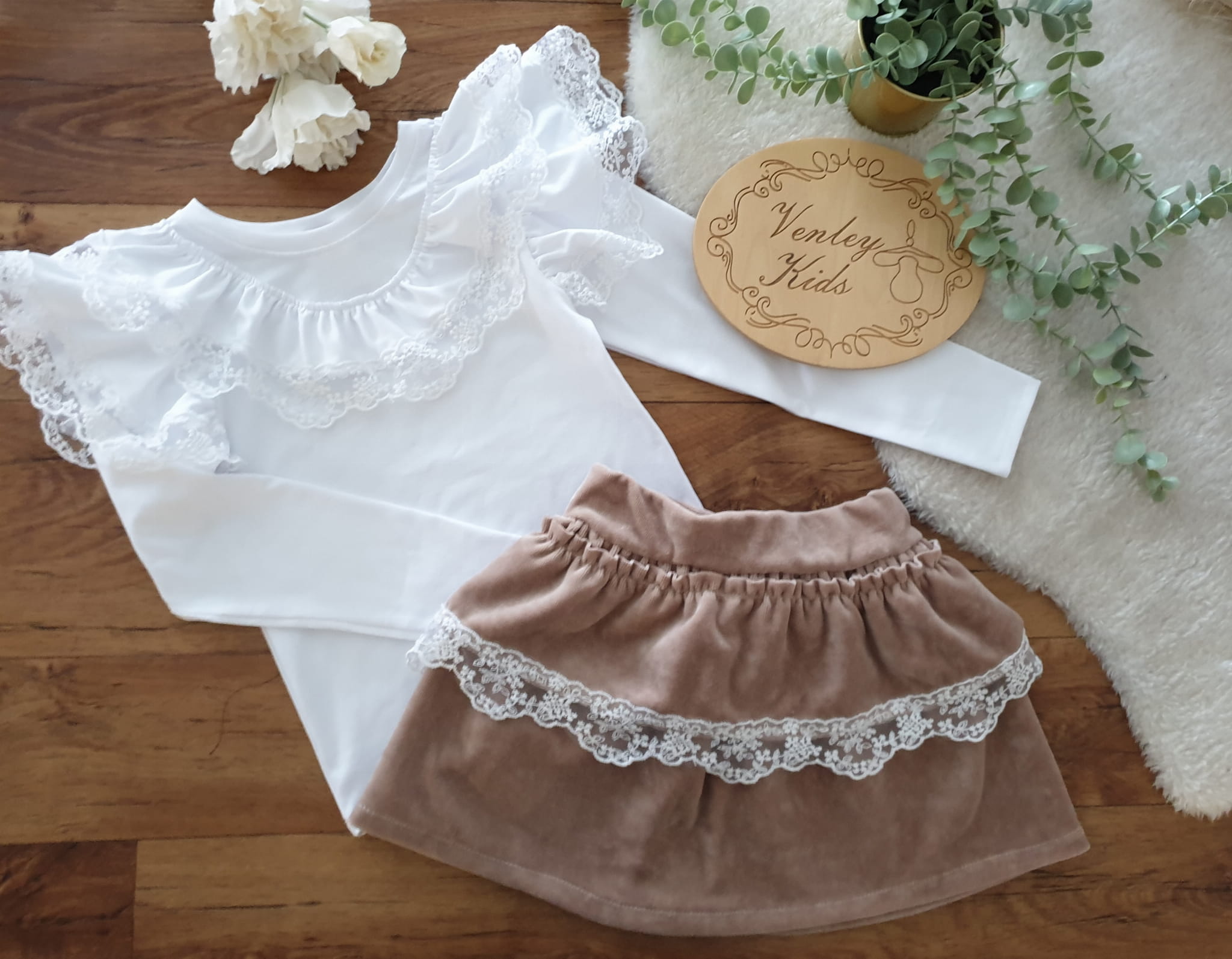 Spódniczka welur beż z koronką