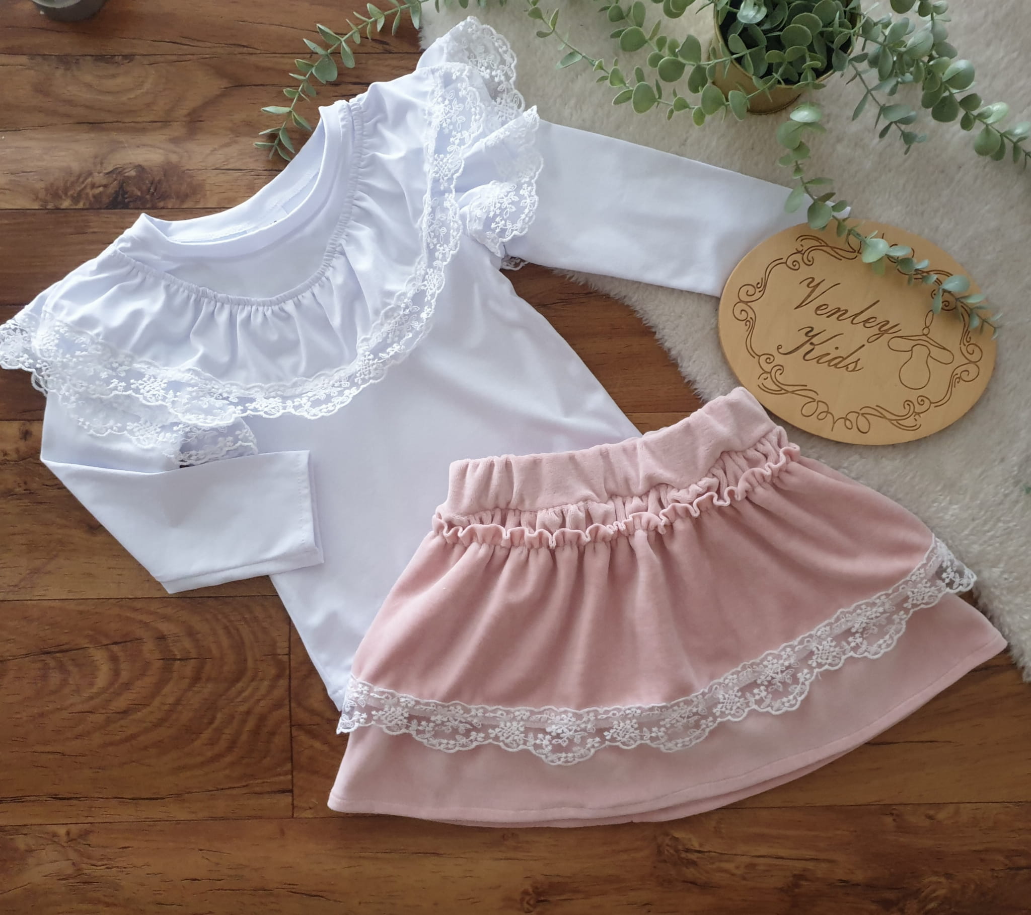 Spódniczka welur beż z koronką
