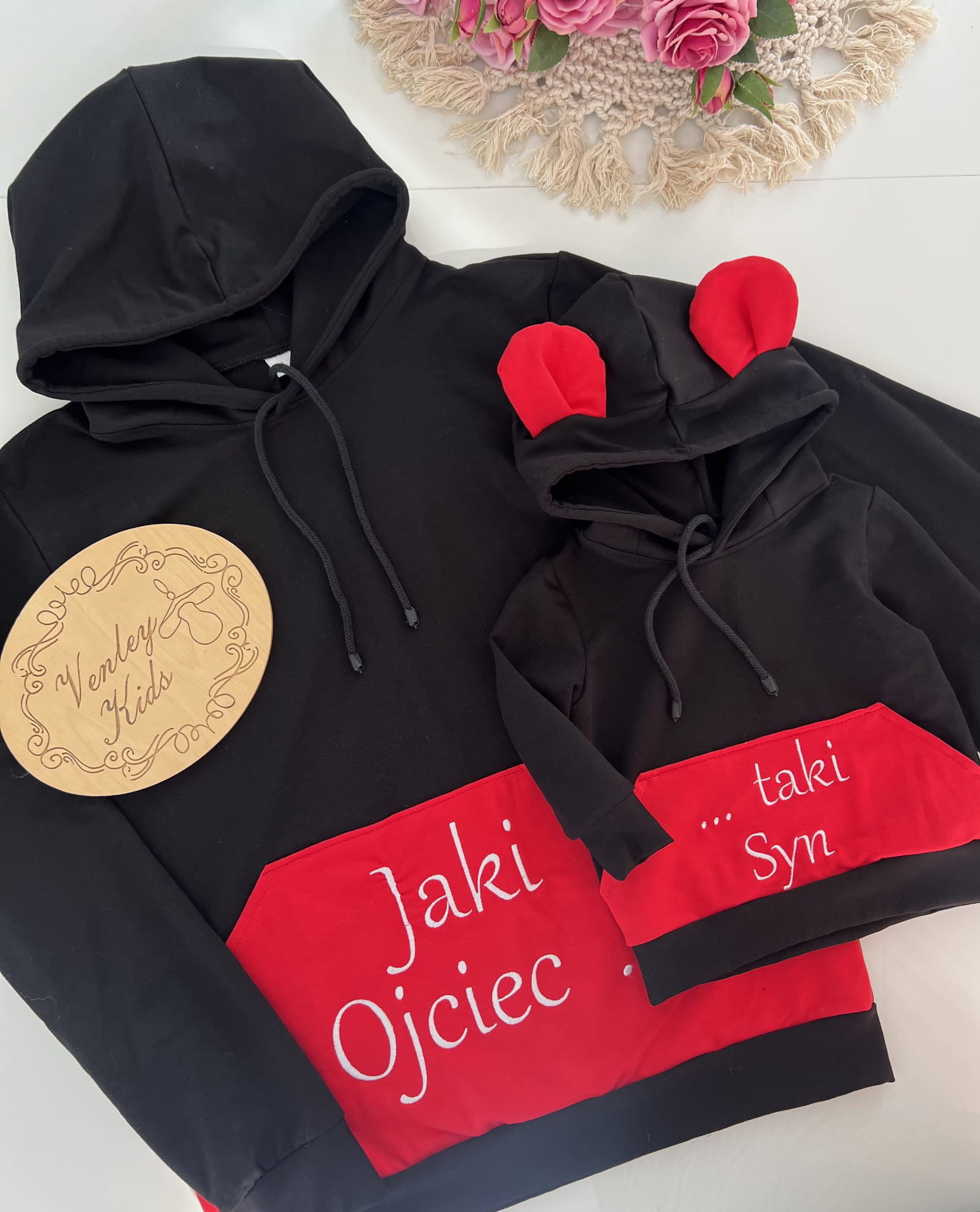 - Bluza dla Synka z uszkami , kieszonką oraz napisem " ... taki Syn " + kaptur