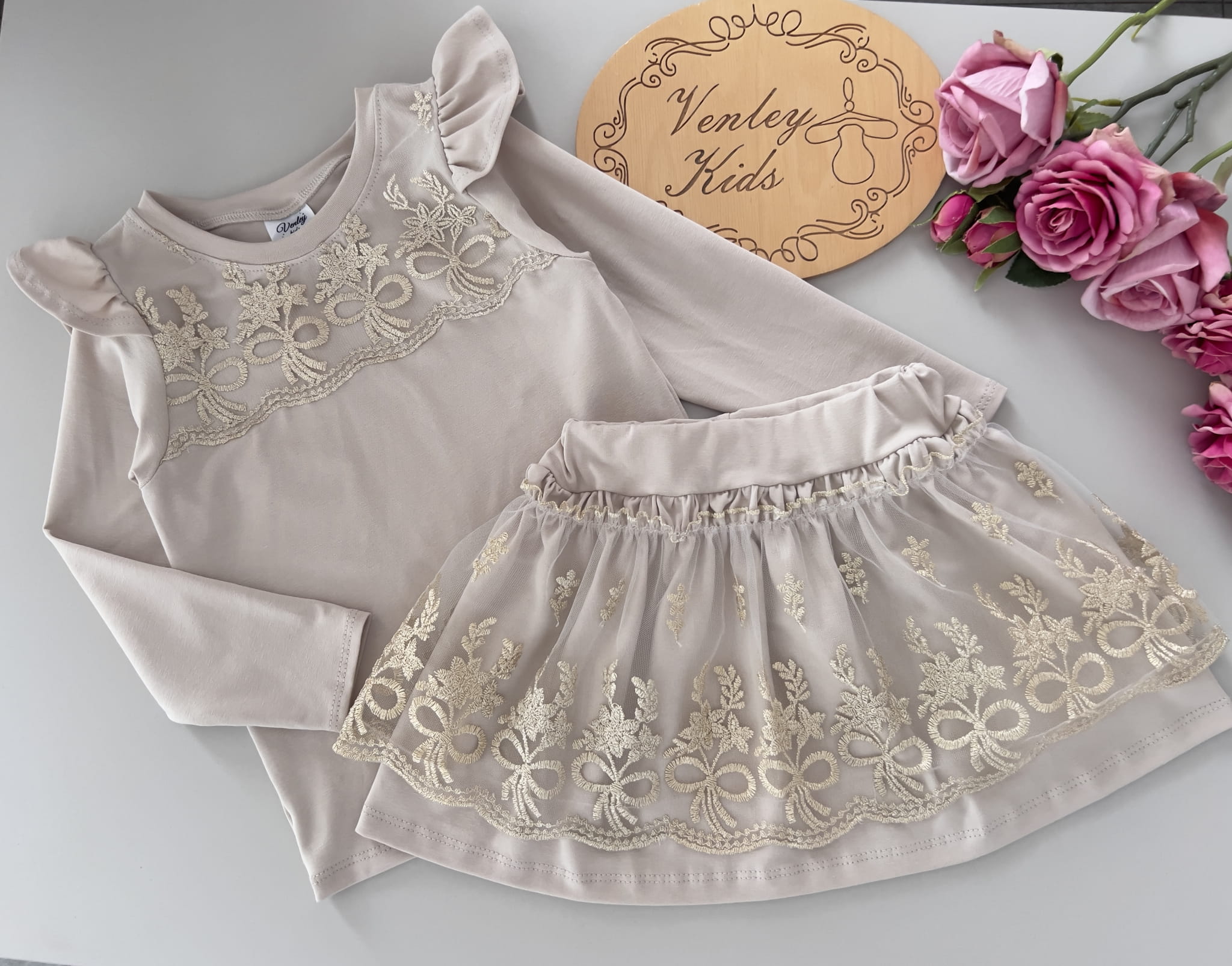 Zestaw beżowy z koronką