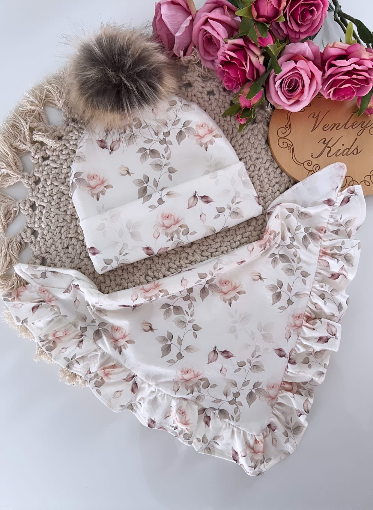 Chusta z podwójnego materiału zapinana, ozdabiana falbanką
